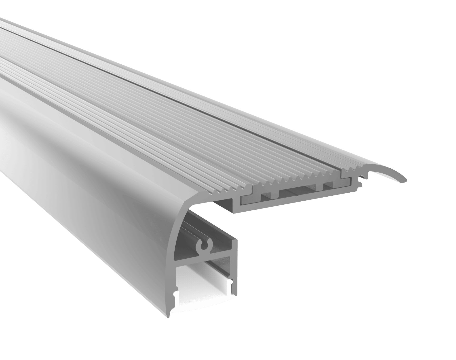 PR4020 PROFILE EN MATIERE ALUMINIUM NEZ DE MARCHE DE COLORIS GRIS D'UNE LONGUEUR DE 1CM AVEC DIFFUSANT POLYCARBONATE