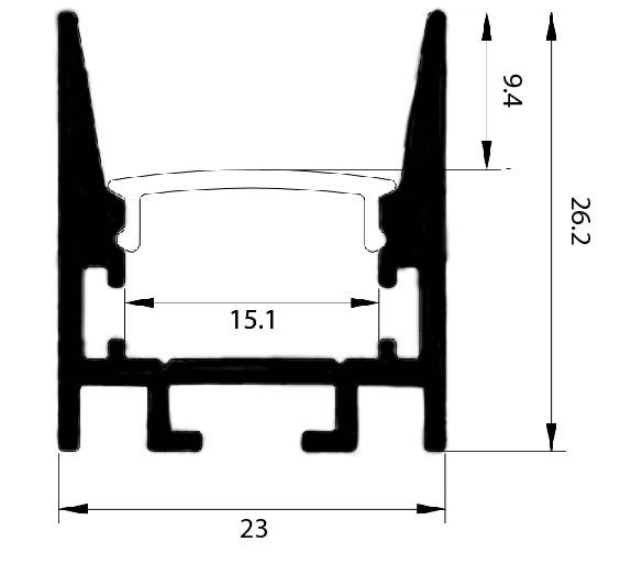 PR4021 PROFILE EN MATIERE ALUMINIUM SAILLIE DE COLORIS GRIS D'UNE LONGUEUR DE 1CM AVEC DIFFUSANT POLYCARBONATE