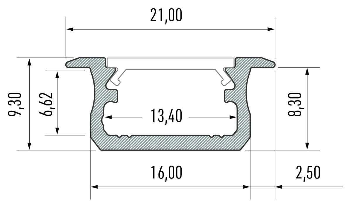 ENGITECHS - PR5002 PROFIL ALUMINIUM ENCASTRE BLANC 1CM - PR5002-BLANC-SP