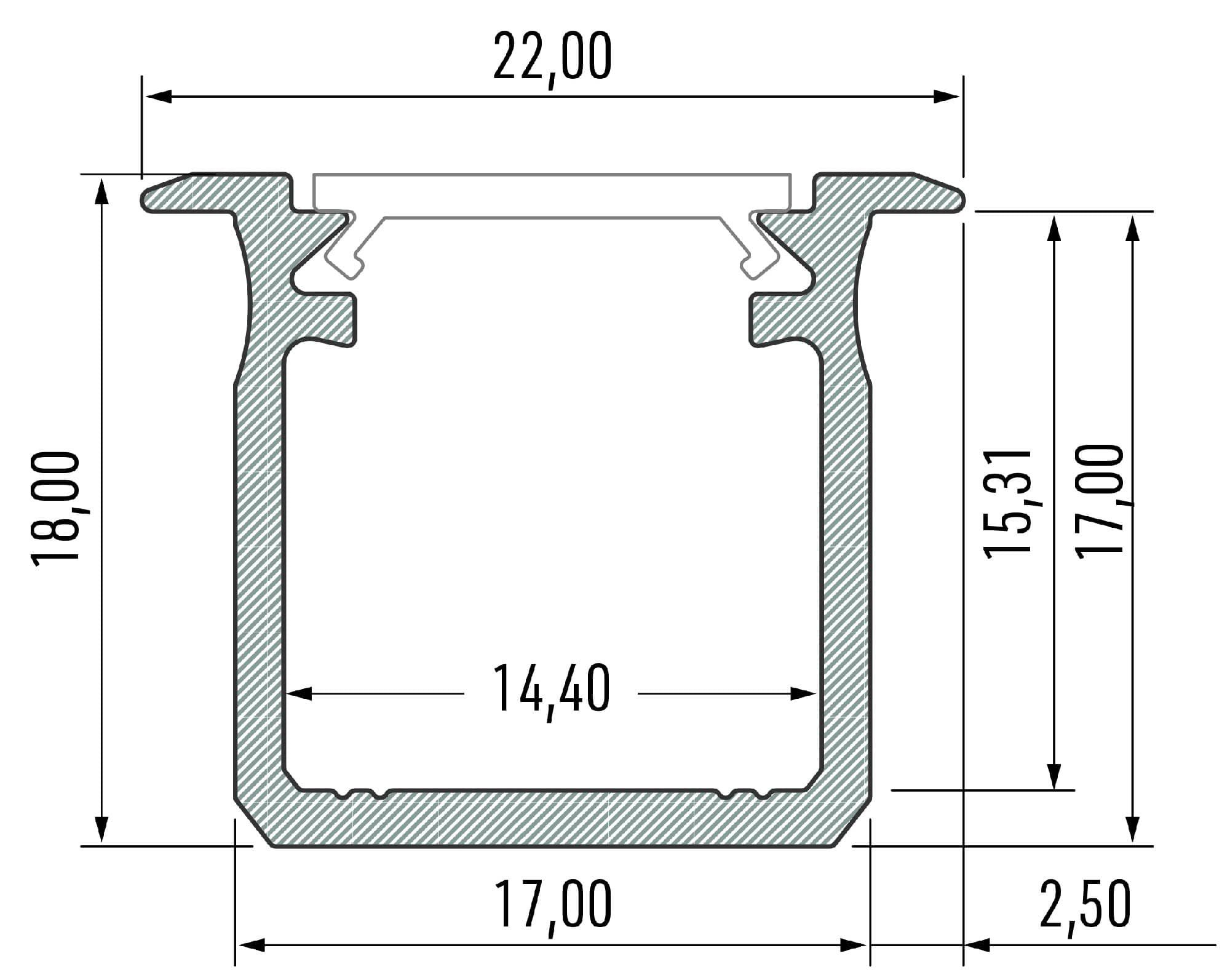 PR5004 PROFIL ALUMINIUM ENCASTRE BLANC LONGUEUR DE 2M SANS DIFFUSEUR (VENDU SEPRAEMMENT)