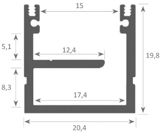 PR6001 PROFIL ALUMINIUM PASSAGE DE CABLE NOIR LONGUEUR DE 2M AVEC DIFFUSANT POLYCARBONATE