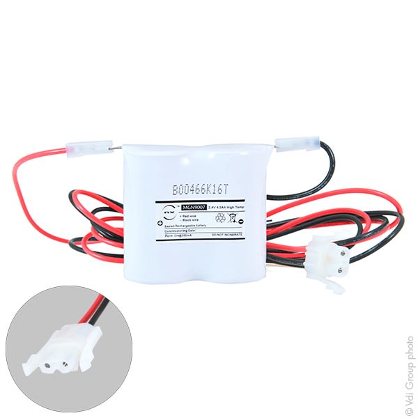 Vendu par Batterie(s) Format : Côte/Côte Batterie + sortie AMP Cette batterie NX est livrée avec une connectique AMP qui se monte facilement sur le pack via les cosses Faston femelle 4.8mm. La longueur de fils de 130cm permet d'adapter ce pack sur de nombreux bloc de secours. Nos packs NX sont composés de cellules NICD haute température spécialement conçues pour répondre aux cahiers des charges des blocs déclairage de secours des plus grands fabricants. Dotée de la technologie Haute température ainsi que de séparateurs spécifiques, chaque cellules ont été optimisées pour fonctionner dans un environnement intensif à haute température. Ces composants permettent dassurer et maintenir une charge permanente à haute température. Ces packs permettent de respecter le cahier des charges suivant = - Capacité à séclairer sur une durée d1h ou 3h (selon le modele) lors du déclenchement de léclairage de secours - Capacité à se recharger en 24h pour supporter un nouveau déclenchement de léclairage de secours - Capacité à se déclencher même après 4 ans de mise en service - Peut fonctionner à une température ambiante de 55°c - Fournit un courant continu de C/30 jusquà C/16 à 55°C Equivalent avec 2D BATTERY 45NC70 SBS CON, B161/2X4