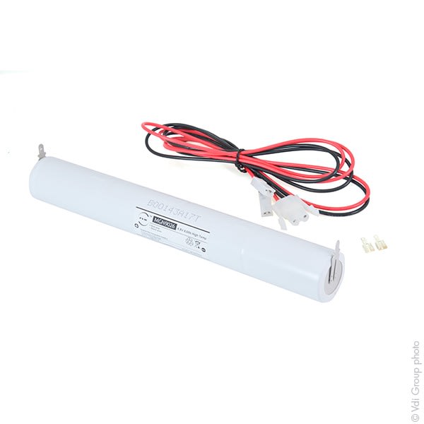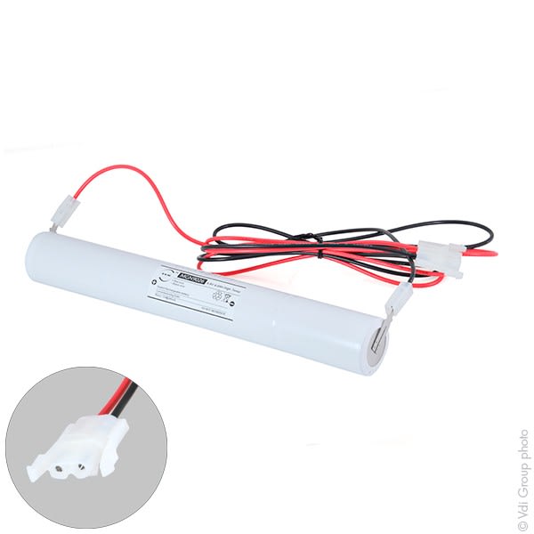 Vendu par Batterie(s) Format : Bâton Batterie + 2 supports + sortie AMP Cette batterie NX est livrée avec une connectique AMP qui se monte facilement sur le pack via les cosses Faston femelle 4.8mm. La longueur de fils de 130cm permet d'adapter ce pack sur de nombreux bloc de secours. Le pack est livré egalement avec 2 embouts de fixation. Nos packs NX sont composés de cellules NICD haute température spécialement conçues pour répondre aux cahiers des charges des blocs déclairage de secours des plus grands fabricants. Dotée de la technologie Haute température ainsi que de séparateurs spécifiques, chaque cellules ont été optimisées pour fonctionner dans un environnement intensif à haute température. Ces composants permettent dassurer et maintenir une charge permanente à haute température. Ces packs permettent de respecter le cahier des charges suivant = - Capacité à séclairer sur une durée d1h ou 3h (selon le modele) lors du déclenchement de léclairage de secours - Capacité à se recharger en 24h pour supporter un nouveau déclenchement de léclairage de secours - Capacité à se déclencher même après 4 ans de mise en service - Peut fonctionner à une température ambiante de 55°c - Fournit un courant continu de C/30 jusquà C/16 à 55°C Equivalent avec 802170, 1203-8512, 8 KRMU 33/62, 4D BATTERY 45NC70 CON+CAP, 804300