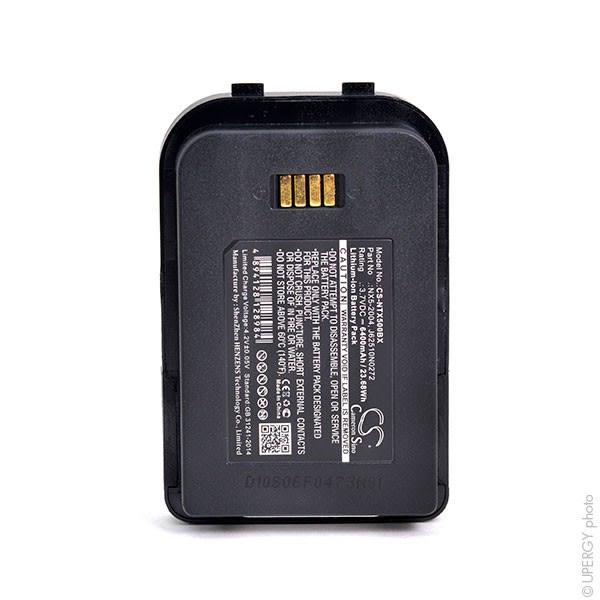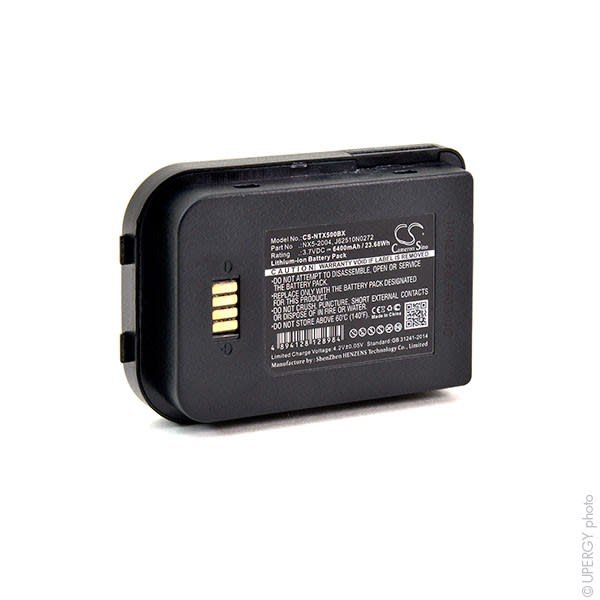 Vendu par Batterie(s) Remplacez votre batterie dorigine avec cette batterie compatible premium afin de profiter des pleines capacités de votre douchette. Quil sagisse dun lecteur de codes-barres laser, CCD ou imager, cette batterie répondra parfaitement aux exigences de votre douchette et vous permettra de retrouver une plus grande autonomie. Etant donné la multiplicité des technologies, des formes et des dimensions des lecteurs de codes-barres, nous nous sommes assurés de la parfaite compatibilité de cette batterie avec votre douchette. Cette batterie premium a été conçue de sorte à correspondre totalement aux spécificités de votre lecteur code barre et répond à toutes les exigences de sécurité et de fiabilité du constructeur dorigine Grâce à cette parfaite compatibilité, vous pourrez continuer à utiliser votre chargeur dorigine sans risques de surcharges et de surtensions. Vous pouvez vérifier ci-dessus ou contacter notre service client afin de connaitre tous les modèles auxquels peut sadapter cette batterie. Equivalent avec 6251-0A, NX5-2004, J62510N0272