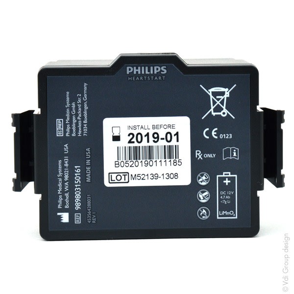 Vendu par Batterie(s) Batterie d'origine, non rechargeable Permet de délivrer 300 chocs ou dassurer 12 heures de surveillance Equivalent avec 989803150161