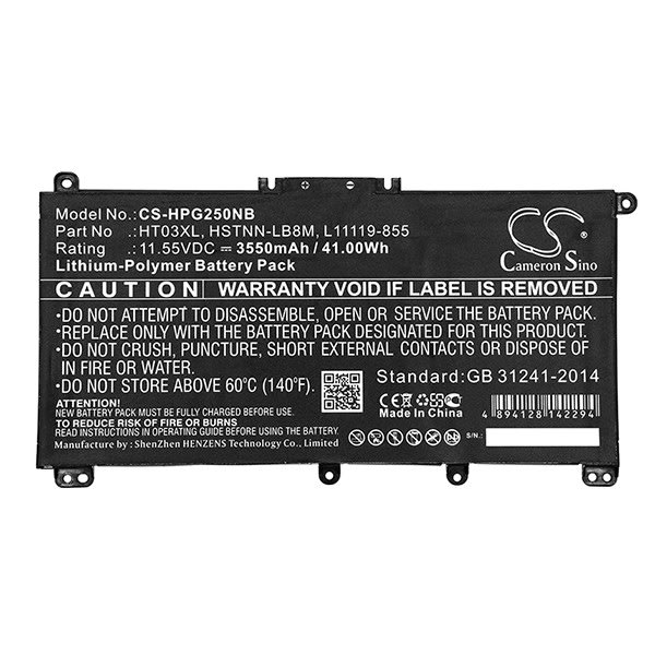 Vendu par Batterie(s) Batterie de haute qualité compatible avec différents modèles. Prolongez la durée de vie de votre ordinateur pour profiter au maximum de ses performances en toute sécurité. Equivalent avec HSTNN-LB8M, TPN-Q210, TPN-Q209, TPN-Q208, TPN-Q207, TPN-I134, TPN-I133, TPN-I132, TPN-I131, TPN-I130, TPN-C136, L11421-545, L11421-544, L11421-542, L11421-423, L11421-421, L11421-2D2, L11421-2D1, L11421-2C3, L11421-2C2, L11421-2C1, L11421-271, L11421-1C2, L11421-1C1, HT03041XL, HSTNN-UB7J, HSTNN-LB8L, HSTNN-IB8O, HSTNN-IB80, HSTNN-DB8S, HSTNN-DB8R, L11421-422, L11119-855, HT03XL