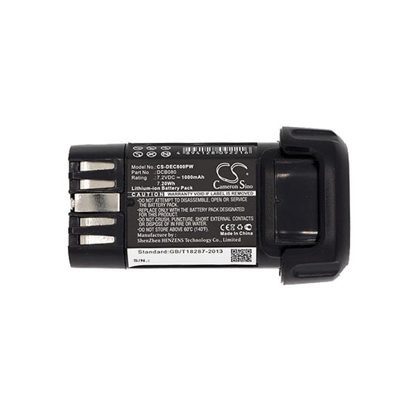 Vendu par Batterie(s) 7.20Wh Important : Afin de ne pas déteriorer la batterie, il ne faut pas charger cette batterie avec un courant supérieur à 1C. Ex : batterie 2Ah = le courant du chargeur doit etre de 2A max batterie 4Ah = le courant du chargeur doit etre de 4A max Afin de ne pas déteriorer la batterie, il ne faut pas charger cette batterie avec un courant supérieur à 1C. Ex : batterie 2Ah = le courant du chargeur doit etre de 2A max batterie 4Ah = le courant du chargeur doit etre de 4A max Afin de préserver la durée de vie de votre batterie et de permettre une charge plus efficace, il est important de ne pas décharger la batterie complètement jusqu'à ce que votre outillage ne tourne plus du tout. Veillez à la mettre en charge dès que votre outillage commence à tourner plus lentement ou que l'indicateur batterie faible s'allume. Equivalent avec DCB080