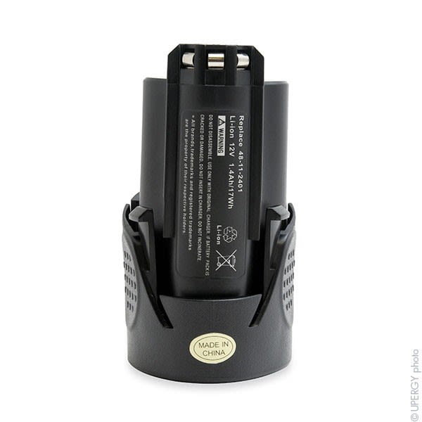 Vendu par Batterie(s) Important : Afin de ne pas déteriorer la batterie, il ne faut pas charger cette batterie avec un courant supérieur à 1C. Ex : batterie 2Ah = le courant du chargeur doit etre de 2A max batterie 4Ah = le courant du chargeur doit etre de 4A max Afin de préserver la durée de vie de votre batterie et de permettre une charge plus efficace, il est important de ne pas décharger la batterie complètement jusqu'à ce que votre outillage ne tourne plus du tout. Veillez à la mettre en charge dès que votre outillage commence à tourner plus lentement ou que lindicateur batterie faible sallume. Equivalent avec 48-11-2401, M12B9, M12B6, M12B5, M12B4, M12B3, C12BX, 48-11-2460, 48-11-2440, 48-11-2430, 48-11-2420, 48-11-2412, 48-11-2411, 48-11-2402, 4932451395, 4932451388, 4932430065, 4932430064, 4931456642, M12TM, M12B2, M12, C12B, 48112401