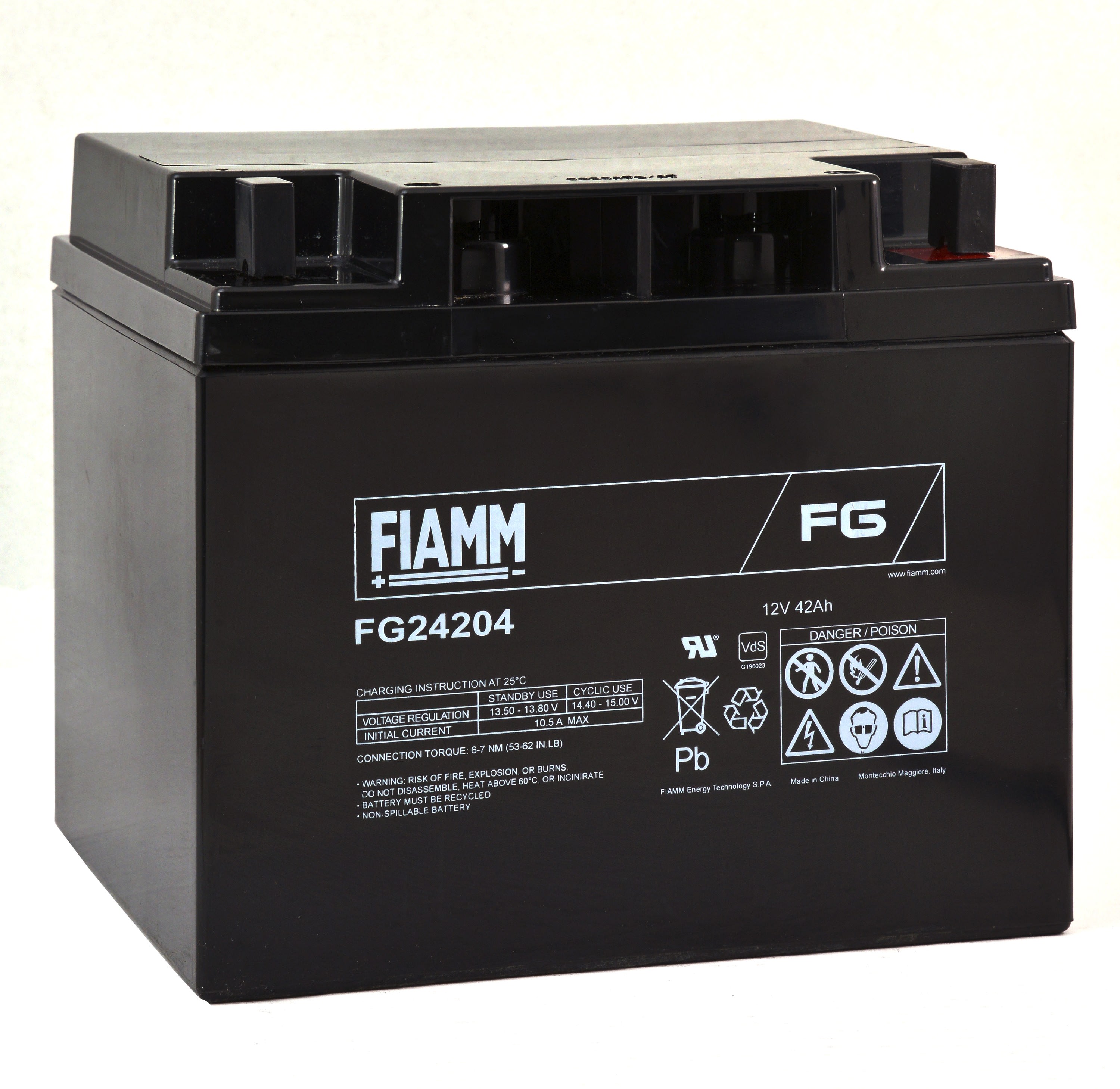 La gamme FG de Fiamm est constituée de batteries plomb AGM adaptés pour des usages stationnaires avec des régimes de décharges plus ou moins longs (alarme, portail, éclairage de secours). Disponibles en 6 et 12V avec une plage de capacité de 1.2 à 7Ah, les batteries de la gamme FG offrent une durée de vie de 5 ans. Les batteries de la gamme sont totalement étanches.