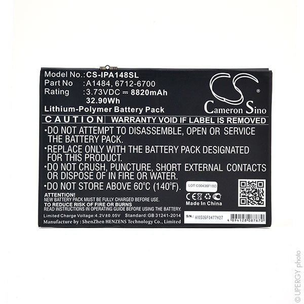 Vendu par Batterie(s) Equivalent avec 6712-6700, A1484
