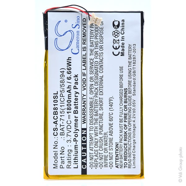 Vendu par Batterie(s) Equivalent avec AC13F3L, KT.0010G.002D, BAT-715(1ICP5/58/94), BAT-715