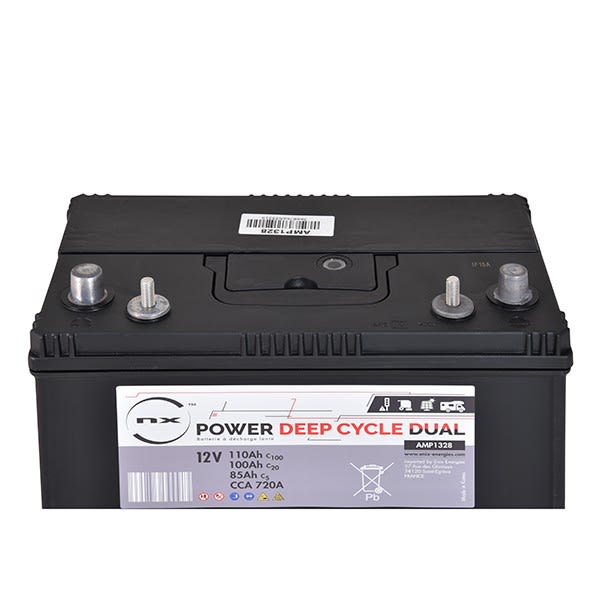 Vendu par Batterie(s) La batterie NX Power Deep Cycle DUAL combine les avantages de la batterie de démarrage à ceux de la batterie à décharge lente. En effet, cette batterie permet de fournir l'énergie nécessaire au démarrage moteur (voir performance en CCA) ainsi quune très bonne résistance au cyclage ce qui favorise lutilisation à décharge lente. Entièrement scellée et sans entretien (Sealed Maintenance Free), cette batterie est dotée de plaques planes permettant une résistance accrue aux vibrations et à lauto décharge. Cette batterie est donc conçue pour différents types dapplications pour les particuliers et professionnels. Caractéristiques de la batterie NX Power Deep Cycle DUAL = - Capacité nominale 12V 85Ah (C5), 100Ah (C20), 110Ah (C100) - Intensité au démarrage (CCA) : 720A - Nombre de cycles à 50% de PDD (profondeur de décharge) : jusquà 400 cycles - Taille du bac : BC27 - Connectique : Double borne ( Borne classique et borne à visse) - Polarité : Positif à gauche - Technologie : Plomb ouvert à plaque plane Avantages de la gamme NX Power Deep Cycle DUAL = - Haute performance énergétique compatible avec les applications DUAL (Démarrage + Servitude). - Technologie de plaques innovante (X Frame) - Résistance au cyclage jusquà 2 x supérieure à celle dune batterie électrolyte liquide. - Absolument sans entretien - SMF. - Antifuite. - Dégazage centralisé. Cette batterie NX Power Deep Cycle DUAL est idéale pour les applications suivantes = - Applications de loisirs type marine, caravaning ou véhicule électrique - Application solaire - Machines de nettoyage Equivalent avec GR27, ALPHACELL 195XTV, DC27MF, MF31DC, LL26, LL26MF, EV27A-A DISCOVER, BC27