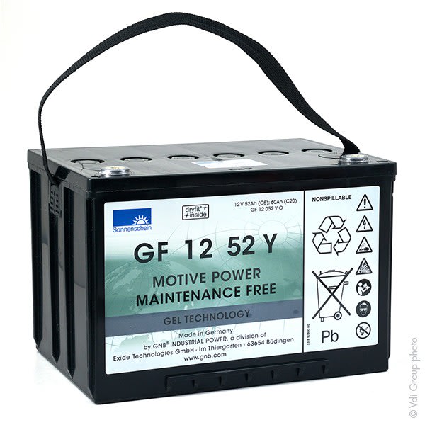 Les batteries Gel (Dryfit) de la gamme de monoblocs Sonnenschein GF-Y sont particulièrement adaptées pour de la servitude et pour l’alimentation les véhicules électriques (fauteuil roulant, bateaux électriques, les scooters électriques…). Cette gamme convient pour des usages de traction légère ou décharge lente et offre jusqu’à 45 cycles à 8% de profondeur de décharge (2°C) suivant la norme IEC 6254-1.