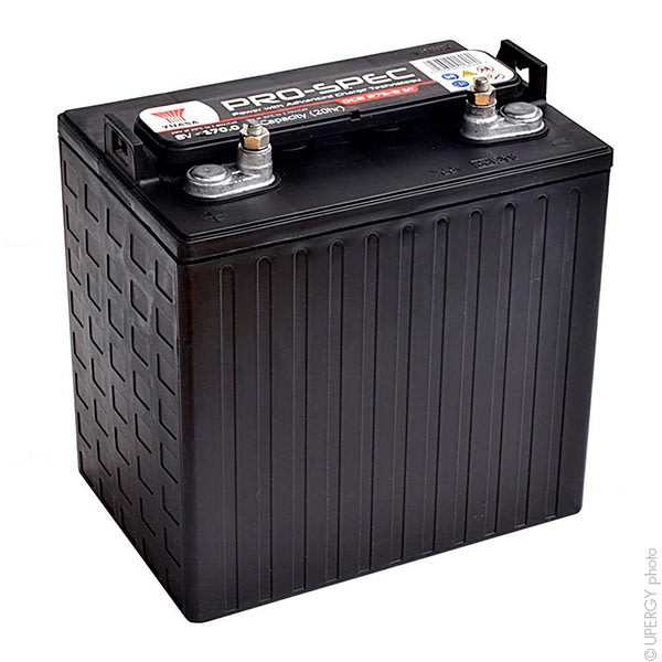Vendu par Batterie(s) Les batteries PRO-SPEC DCB de la marque YUASA ont été spécialement conçue pour répondre aux besoins de fiabilité et de longévité pour des applications à décharge profonde de type semi-traction (Deep Cycle). La conception unique des séparateurs et des plaques réduit le phénomène d'autodécharge, accroît les périodes de stockage et augmente le nombre de cycles d'utilisation. Caractéristiques de la batterie YUASA PRO-SPEC DCB875-8 = - Capacité nominale 8V 145Ah/C5 - 170Ah/C20 - Autonomie avec un courant de décharge à 25A = 295 minutes - Nombre de cycles à 50% de PDD (profondeur de décharge) = 800 cycles - Connectique ET-M8 = Borne à insert male M8 - Bac Non FR = UL94 HB (Standard ABS) Avantages de la gamme DCB PRO-SPEC de YUASA = - Bonne récupération de la batterie après décharges profondes - Bouchons d'évacuation à entretien facile - Matière active haute performance pour augmenter la durée de vie en cyclage et maximiser les capacités - Bornes spécifiques pour prévenir tous dommages lors de courants de décharge élevés - Forte résistance aux vibrations Cette batterie DCB875-8 est idéale pour les applications suivantes = - Véhicules électriques (voiturette de golf/appareils de mobilité) - Équipement d'entrepôt (chariots élévateurs/nacelles, auto-laveuses, plates-formes d'accès...) ATTENTION : Plusieurs batteries de 8V sont nécessaires pour ces applications qui fonctionnent généralement en 24, 36V ou 48V. Equivalent avec DCB875-8, FF08155W, EXIDE FF08155W, YUASA PRO-SPEC DCB875-8, YUASA DCB875-8, US8VGC, US BATTERY US8VGC, CROWN CR165, CR165, TROJAN T875, T875