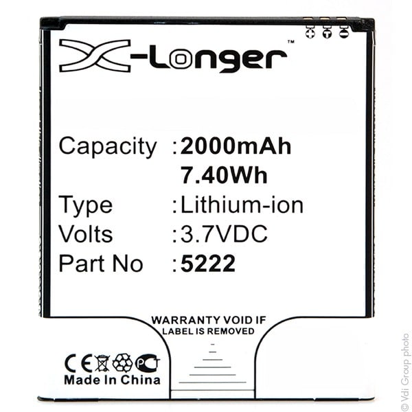 NX Batterie téléphone portable pour Wiko 3.7V 2000mAh vendu par Blister(s) x 1