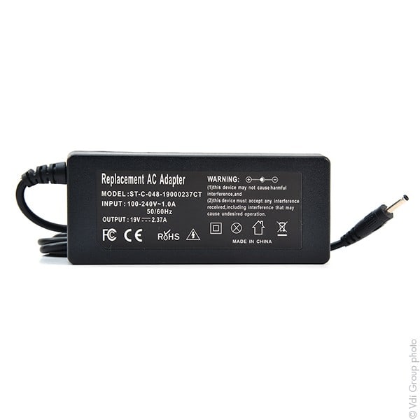 Vendu par Unité(s) Tension de sortie : 19V Capacité: 2.37A Puissance: 45W Connecteur : 3*1mm Equivalent avec A13-045N2A, PA-1400-14, N45W-01, BA44-00278A, ADP-45AW, ADP-40MH AB, AD-4019W, AD-4019P, AD-4019, AA-PA2N40S, AA-PA2N40L, 90-XB34N0PW00000Y, 90-XB020APW00100Q, 0A001-00230100, 3SF314-51