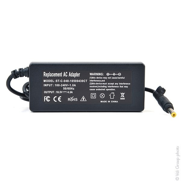 Vendu par Unité(s) Tension de sortie : 10.5V Capacité: 4.3A Puissance 45W Connecteur : 4.8x1.7mm Equivalent avec VGP-AC10V8