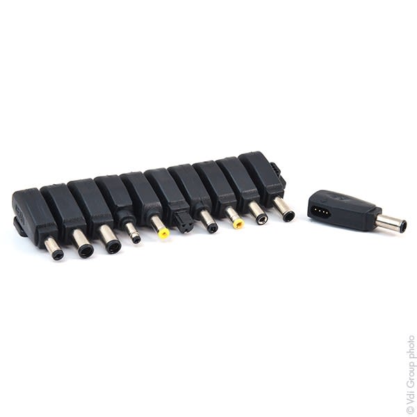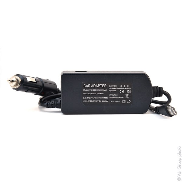 Vendu par Unité(s) Input: 12Vdc, Output: 12-24Vdc : USB Output 5Vdc 90W Livrée avec 11 connecteurs qui couvrent 95% du marché: Cette alimentation comprend la prise voiture et une prise sortie USB. 6,5 X 4,4mm 5,5 X 2,5 mm 19V 3,5 X 1,35 mm 22V 6,3 X 3,0 mm 15V 4,8 X 1,7mm pour HP etc. 5,5 X 2,5 mm pour HP etc. 5,5 X 3,0 mm 19V 3 pins pour Dell 20V 7,4 X 5,0mm 19,5V pour Dell 9,5 X 8,9 X 3 mm 24V pour Apple 7,7 X 2,5 mm 24V pour Apple 7,9 X 0,9 X 29,5 mm 20V connecteur Oval pour HP 19V Equivalent avec LEX1432, LEX1571