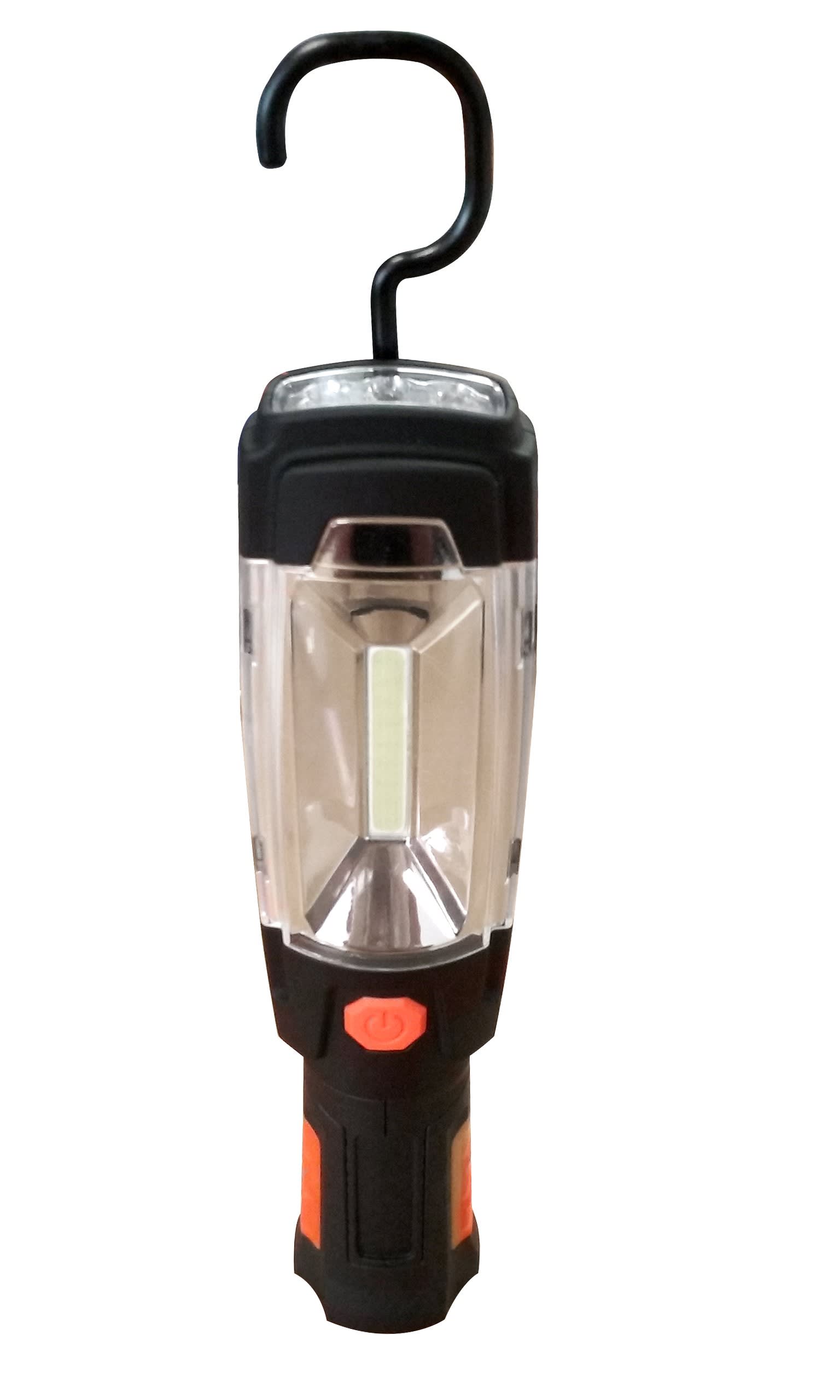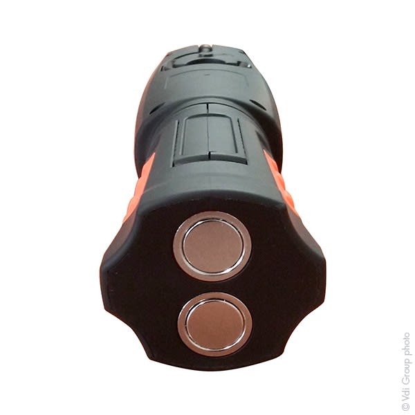 Vendu par Unité(s) Lampe de travail accompagnant toutes vos activités nécessitant de la lumière Sa LED COB est une nouvelle technologie très éclairante d'une durée de vie de 100 000 heures. Double utilisation : LED 3W en mode baladeuse + 6 LED en mode torche Son crochet de suspension pivotant vous permet d'avoir les mains libres et un aimant vous permet de fixer la lampe sur n'importe quel support métallique. Le corps de la lampe se plie et la tête se tourne à 360° se qui permet une excellente orientation du flux lumineux. Luminosité : 400 lux Autonomie : 13 h maximum en mode torche Portée : 35 mètres Témoin de charge et de fin de charge Batterie rechargeable Li-ion 3.7V 2000mAh Résistante à l'eau et aux chocs Livré avec chargeur 230V + 12V