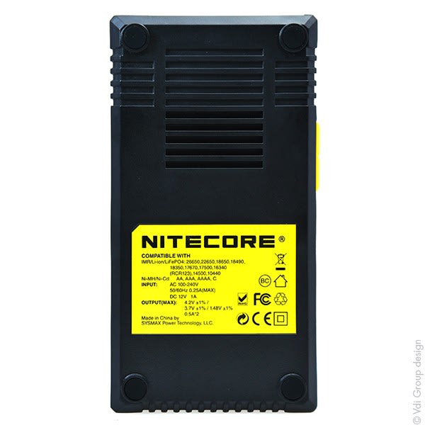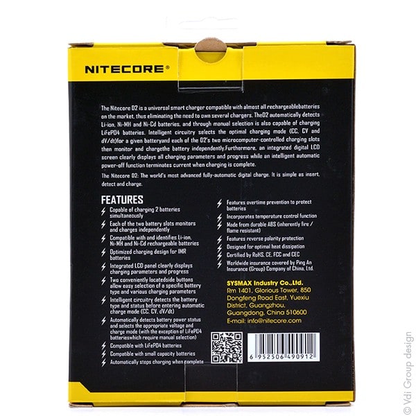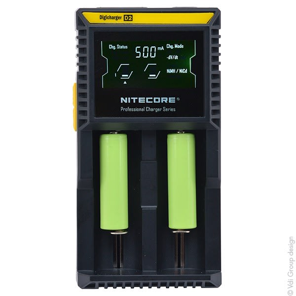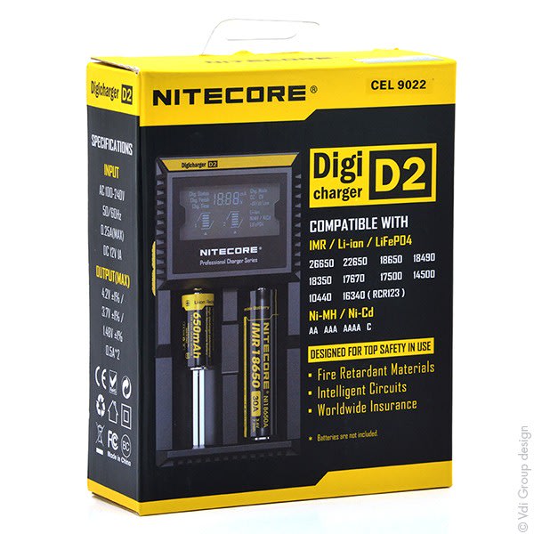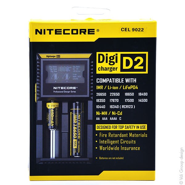 Nitecore Chargeur Li-ion/Lifepo4/NiMH NITECORE D2 pour 2 accus 18650/18350/16340/26650/14500... vendu par Unité(s)