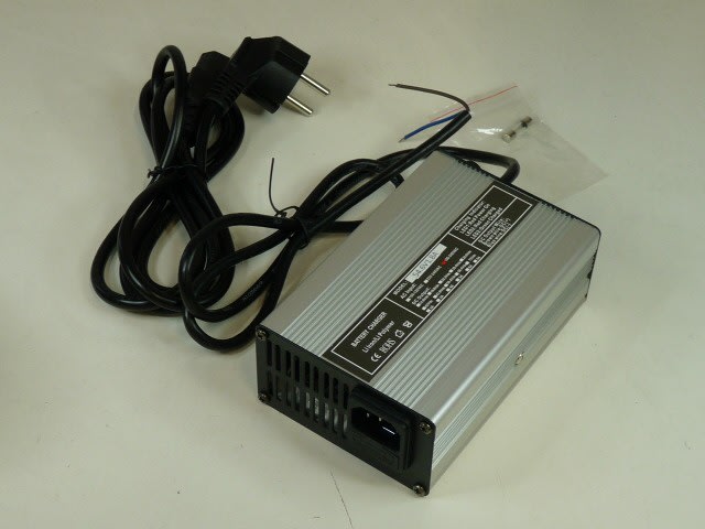 Vendu par Unité(s) Ce chargeur de bureau est destiné au chargement des batteries Li-ion de 13 cellules (48V) 1,8A. Il est automatique et régule entièrement sa charge. Il indique son état de charge grâce à sa LED de couleurs. CARACTERISTIQUES TECHNIQUES : Tension dentrée : 100-240 VAC / 50 - 60kHz Tension de sortie : 54,6V Courant de charge : 1,8A Destiné aux batteries de 13 cellules (48V) Li-Ion Etat de charge indiqué par LED Livré avec cordon secteur EU Livré sans connecteur de sortie