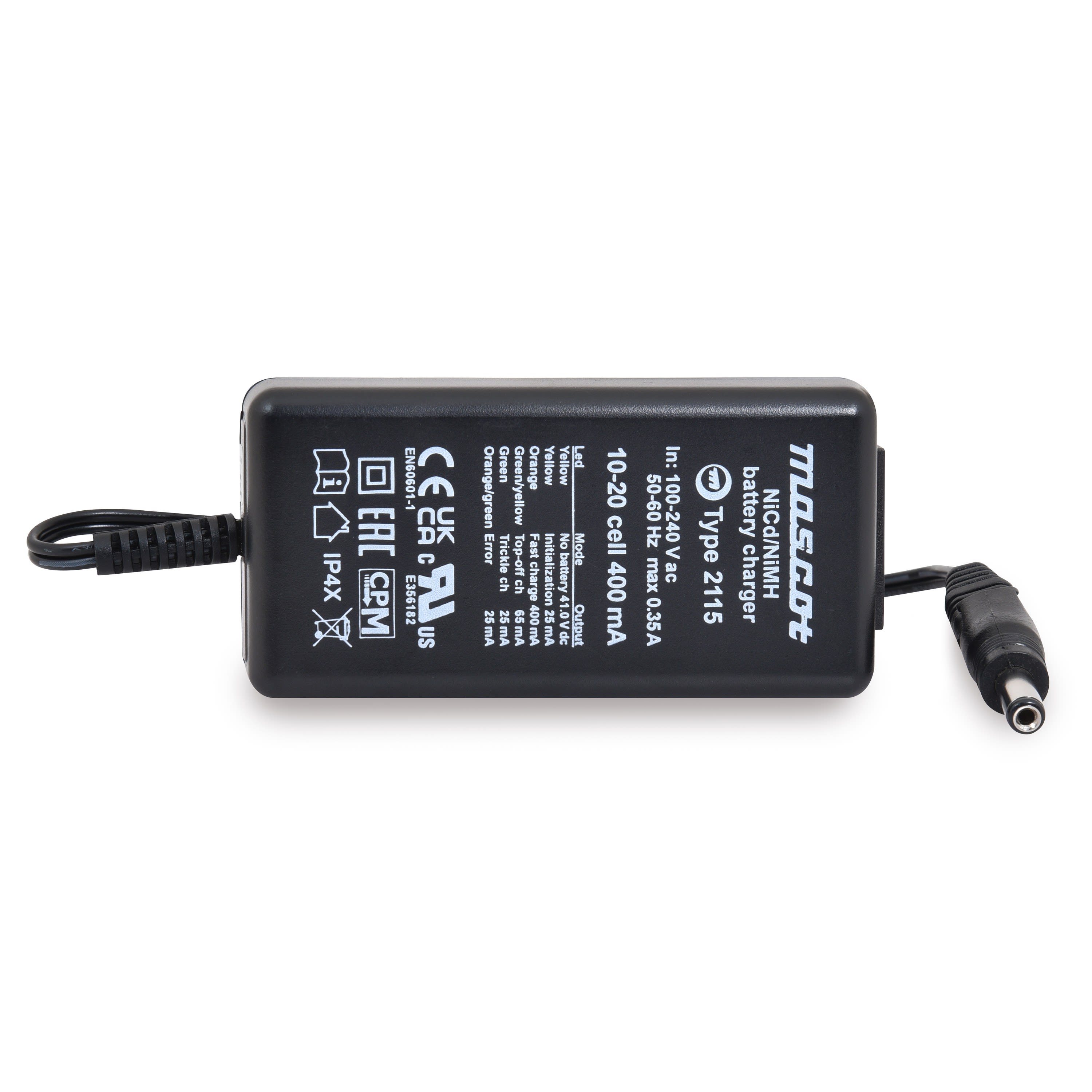 Mascot Chargeur NiCd/NiMH 10 à 20 cellules/0.4A 110-230V Mascot 2115 - Sortie 5.5x2.1mm vendu par Unité(s)