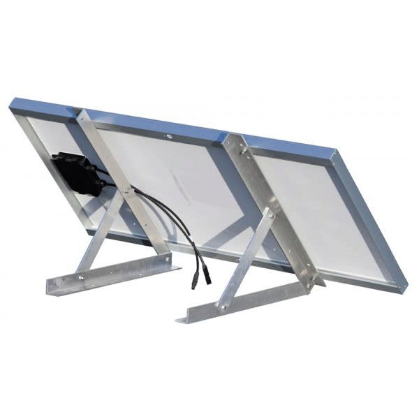 Vendu par Unité(s) Ce kit de fixation en aluminium est destiné au montage au sol ou mural d'un panneau solaire de moyenne dimension (largeur maximum du panneau = 60cm). Il permet de pouvoir installer le panneau en position portrait ou paysage. Ce kit de fixation est livré complet avec visserie. Compatibilité = Il est compatible avec tous les panneaux avec une largeur égale ou inférieure à 60cm. Vous pouvez le recouper légerement si besoin. Compatible avec nos panneaux solaires SPR6003, SPR6019, SPR6022. Dimensions du kit de fixation : -Support au sol : 520mm -Support panneau : 600mm -Bras de liaison : 300mm Pour fixer votre panneau solaire sur un mât, il vous faut ajouter en plus de ce kit de fixation l'adaptateur mât de taille M (SXQ6004).