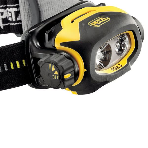 Vendu par Unité(s) La lampe frontale PETZL PIXA 3 est particulièrement robuste, elle résiste aux produits chimiques et supporte un écrasement jusquà 80kg et des chutes jusquà 2m. Munie de deux leds, son éclairage multifaisceaux est puissant (100lm), elle est conçue pour vous éclairer sur des travaux à portée de main, elle vous fournira également la luminosité adaptée à vos déplacements. Certifiée ATEX Zone 2, elle vous accompagnera de partout également jusquaux zones 2 à risques explosifs. La technologie CONSTANT LIGHTING signifie que les performances déclairage de la PETZL PIXA 3 resteront les mêmes sur le temps et la puissance donnée, malgré le déchargement des piles. Ergonomique, son bouton sactive facilement y compris avec des gants. La PIXA 3 se verrouille électroniquement pour éviter tout allumage intempestif une fois rangée ou en déplacement. Son bandeau apporte confort par son élasticité et est lavable. CARATERISTIQUES TECHNIQUES : ATEX Zone 2 Technologie éclairage : 2 leds Modes : -Vision lointaine : 100 lumens/ 90m de portée/ 3h30 dautonomie -Déplacement : 60 lumens / 45m de portée / 6h30min dautonomie -Travaux à portée de main : 20 lumens / 15m de portée / 26h dautonomie -Et un mode réserve de 10 lm pendant 13h Fonctionne avec 2 piles AA (LR6) Tension nominale : 3V Compatible avec piles rechargeables NiMh et Li-ion IP67 Couleur jaune et noir Platine de fixation sur casque fournie Equivalent avec E78CHB 2, EZX6694, EZX66143, PETZL PIXA 3