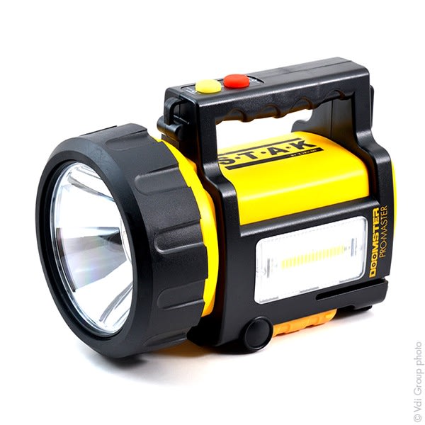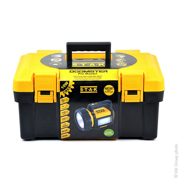 Vendu par Unité(s) Projecteur Doomster Pro-Master de la marque STAK Phare portable professionnel doté d'une LED 10W CREE Intensité lumineuse : 735 lumens Autonomie : 15 heures Portée : 1000 mètres Deux puissances possibles pour la LED principale Une LED 3W COB sur le côté permet une utilisation en mode lanterne + clignotant rouge de signalisation Mode anti black out : en cas de coupure de courant, si la lampe est branchée au secteur, sa LED s'allume. Le produit dispose d'une sortie USB pour pouvoir recharger votre smartphone. Support mains libres permettant de poser le projecteur au sol et de l'incliner Fonctionne avec une batterie lithium 3.7V 4Ah fournie. Chargeur allume-cigare 12V, chargeur secteur et bandoulière inclus IP44 Ce projecteur est vendu dans sa valise de transport Garantie : 2 ans Equivalent avec ST999-10L