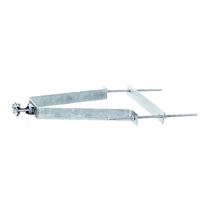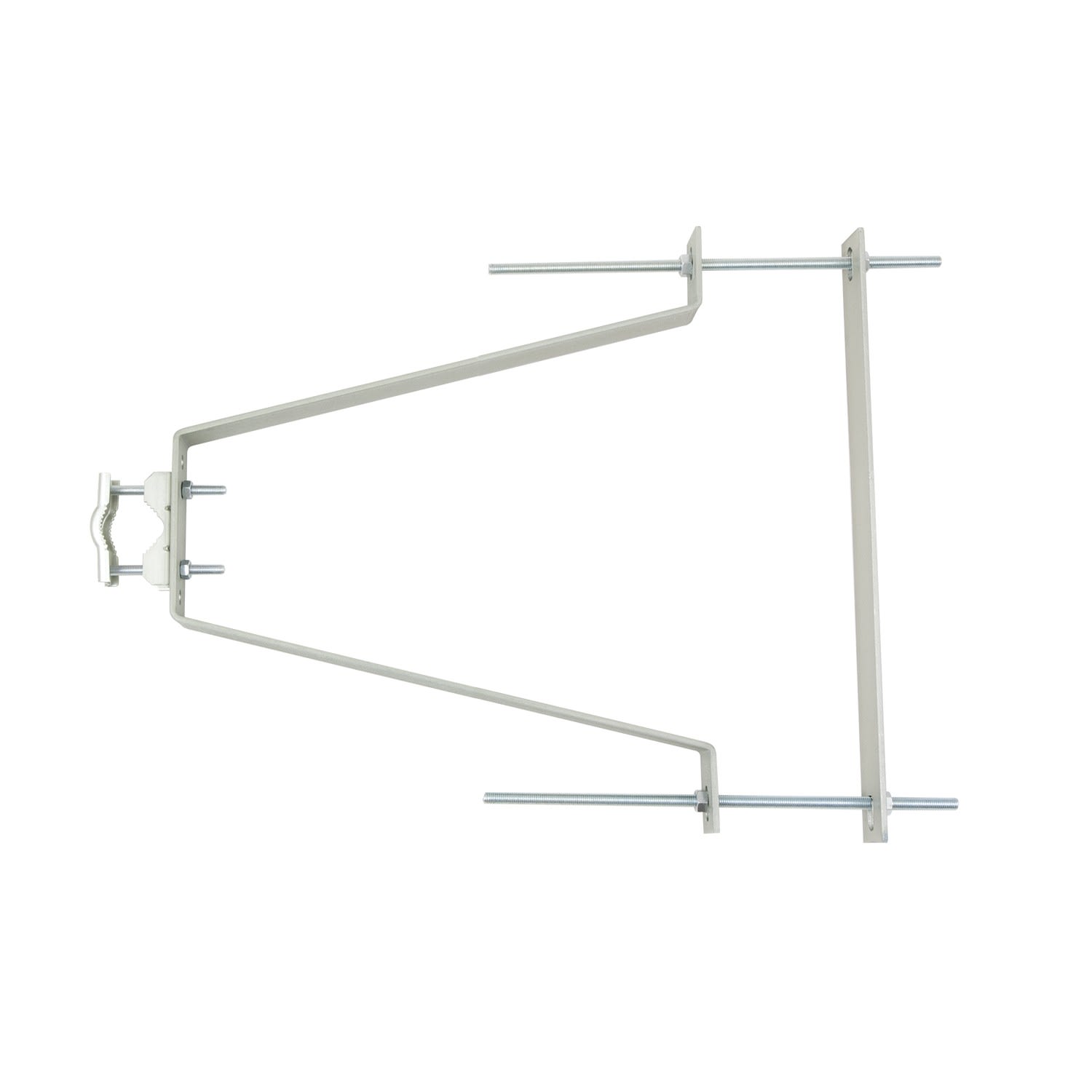 1 Paire de fixations murales déport 35 cm, acier 45 x 5 mm, entraxe de perçage 34 cm, pour mâts de Ø 25 à 50 mm, avec 2 contreplaques et 4 tiges filetées Ø10 mm, longueur 35 cm - finition Zinc bleu.