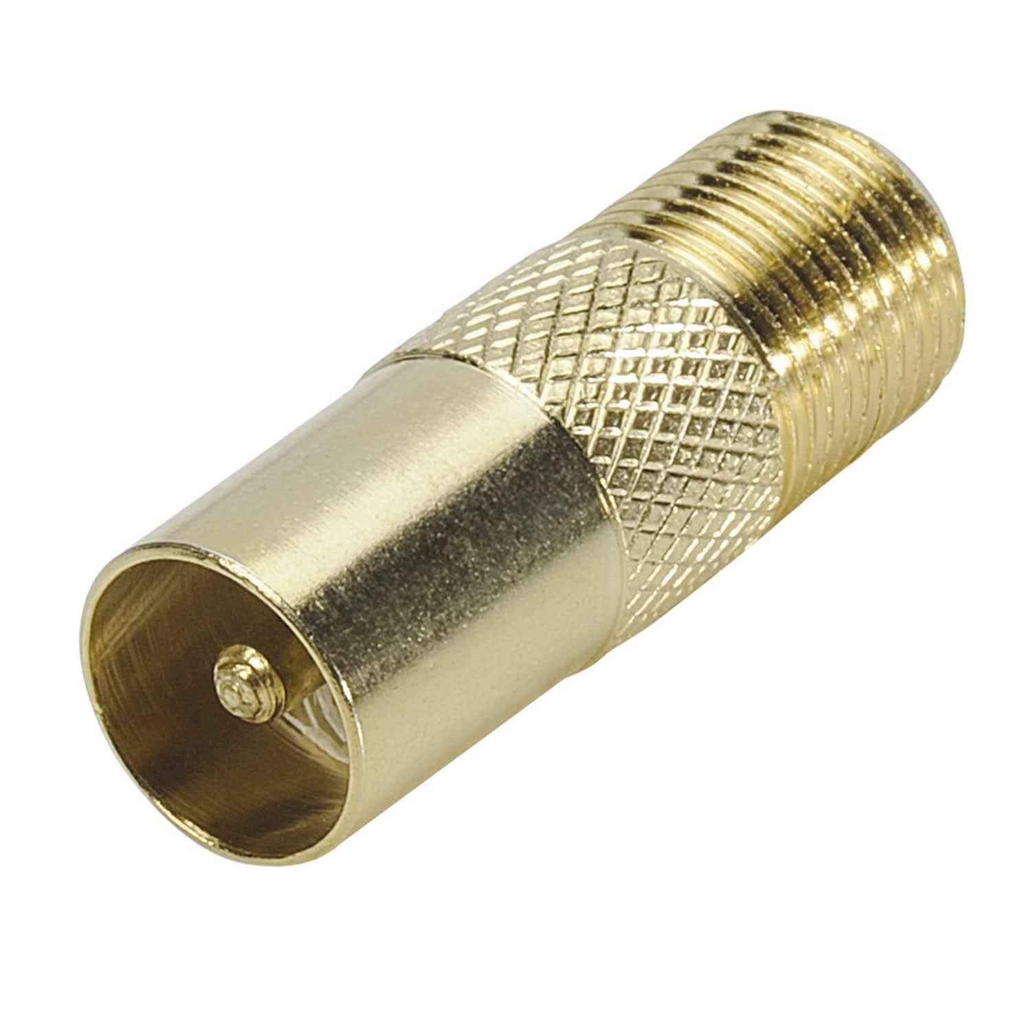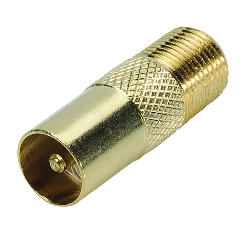 Adaptateur F Femelle / TV 9.52 mm Mâle - Connecteurs plaqués OR - Permet de raccorder un cordon ou un équipement avec une fiche F mâle à un autre muni d'une fiche TV 9,52mm femelle