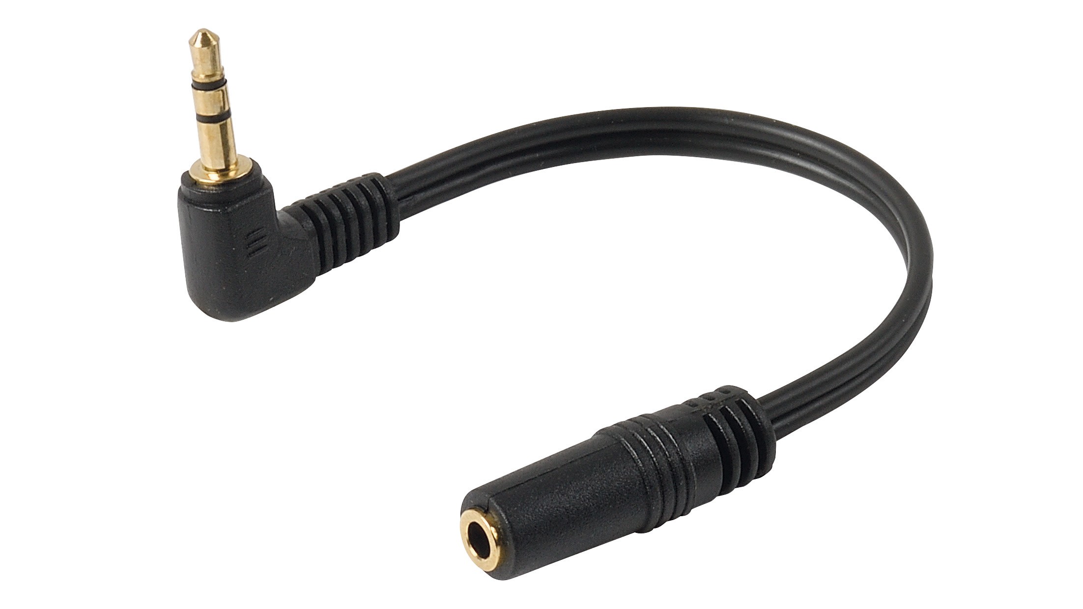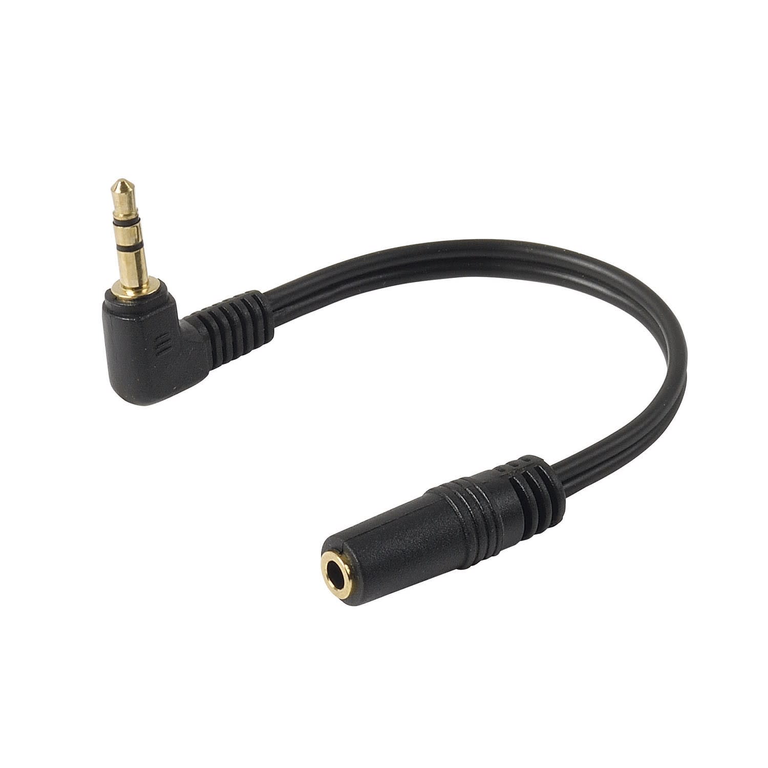 Adaptateur Jack 3.5mm mâle coudé à 90°/ Jack 3.5mm femelle - connecteurs plaqués OR - 10cm - couleur du cordon noire