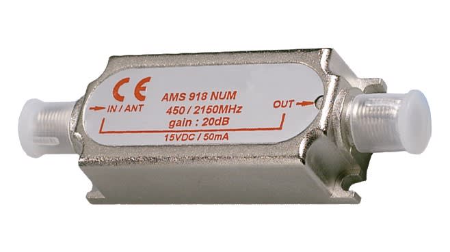 Amplificateur SAT intérieur - gain: 20dB - niveau de sortie: 150 dB - Bande passante de 950 à 2200 Mhz - métal