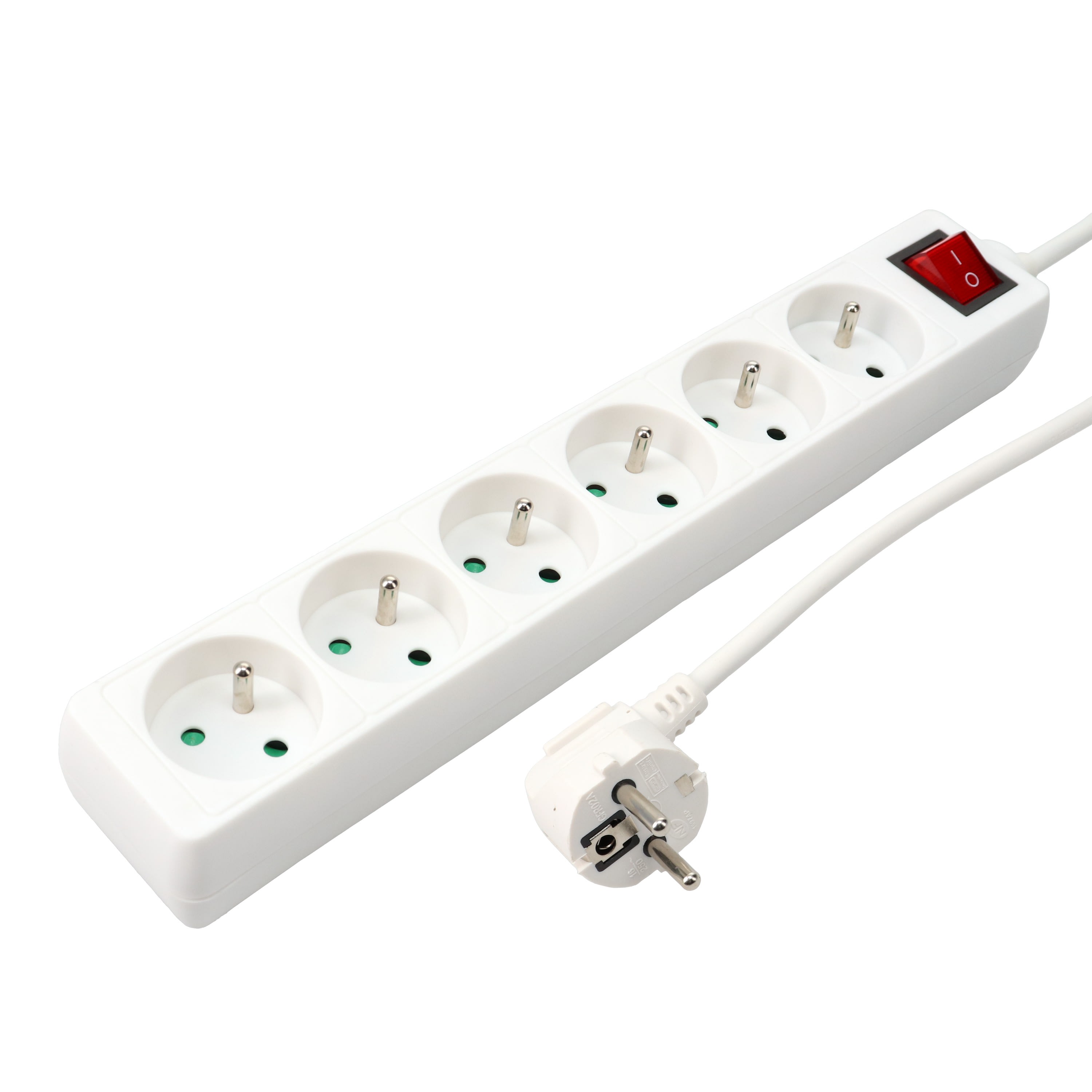 Bloc multiprises 1m - 6 prises x(2 Pôles + Terre) - 3 x 1mm² - 16A - puissance maximale 3680W + interrupteur lumineux - protection enfants - blanc