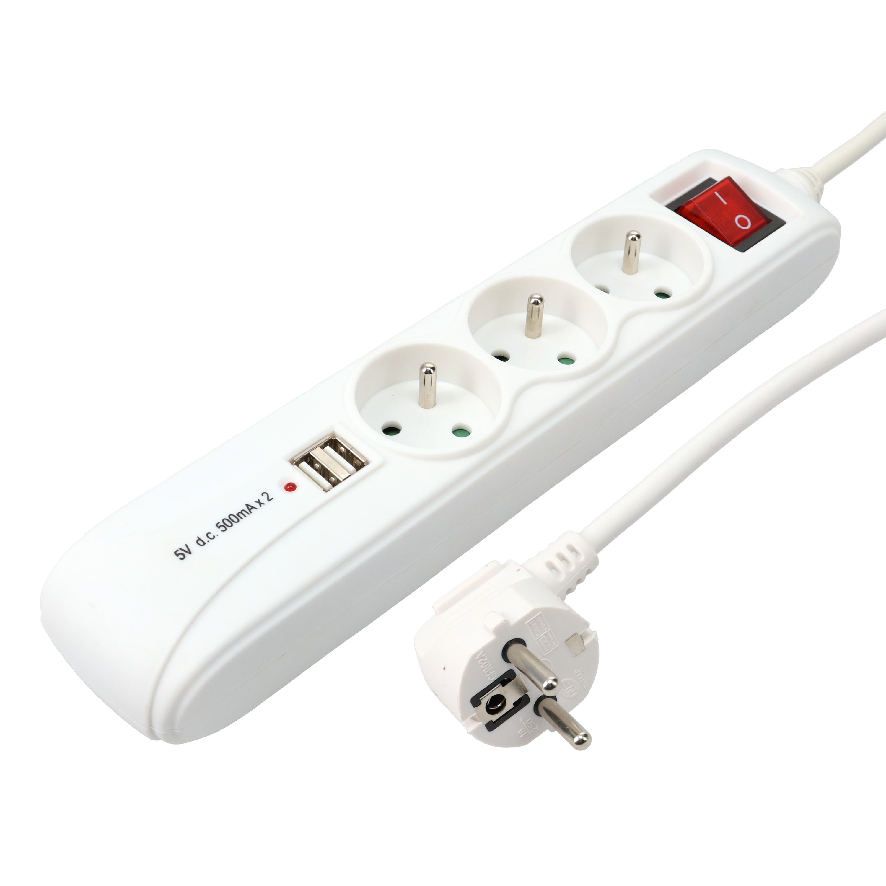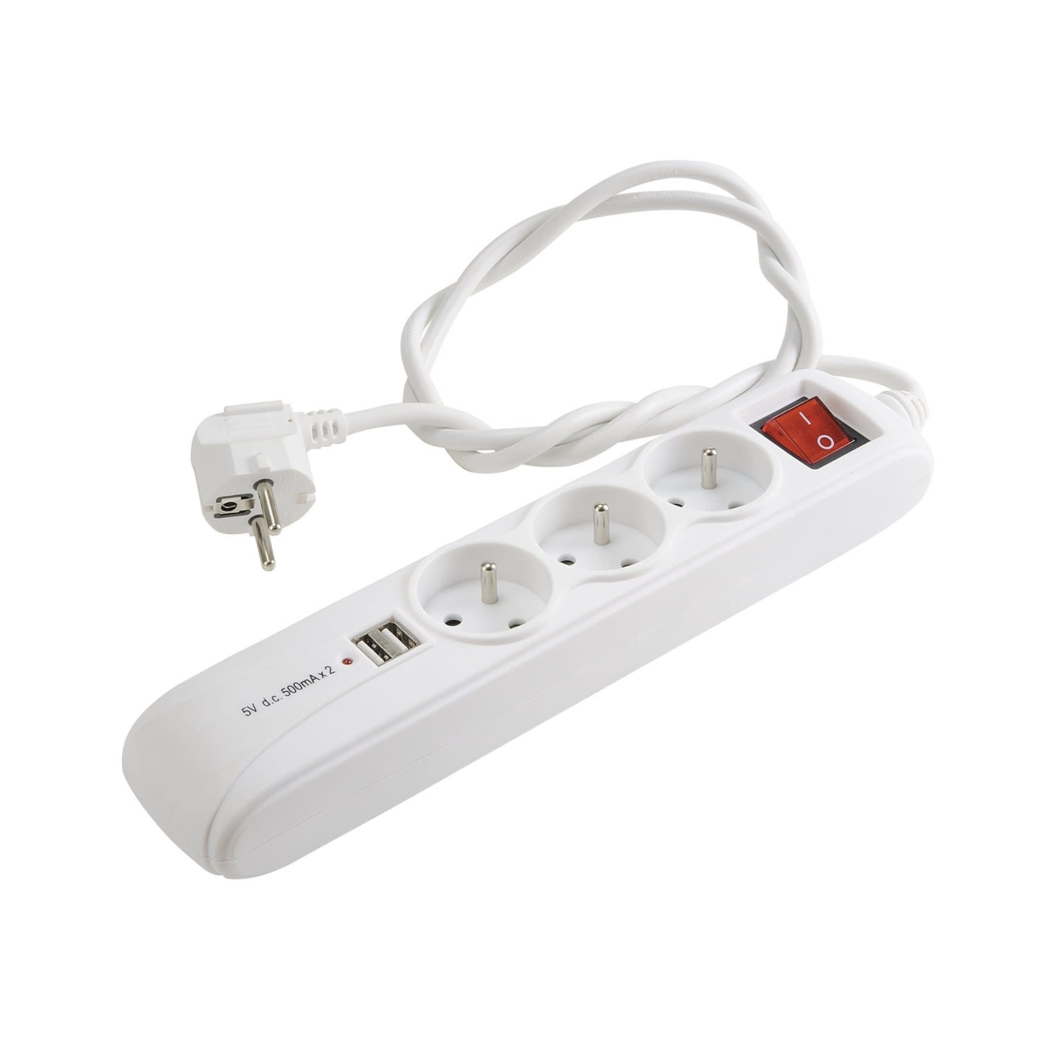 Erard - Bloc multiprises 1m - fiche (2 P+T) M / prises (2 P+T) F + 2 x USB A M - blanc - 8366