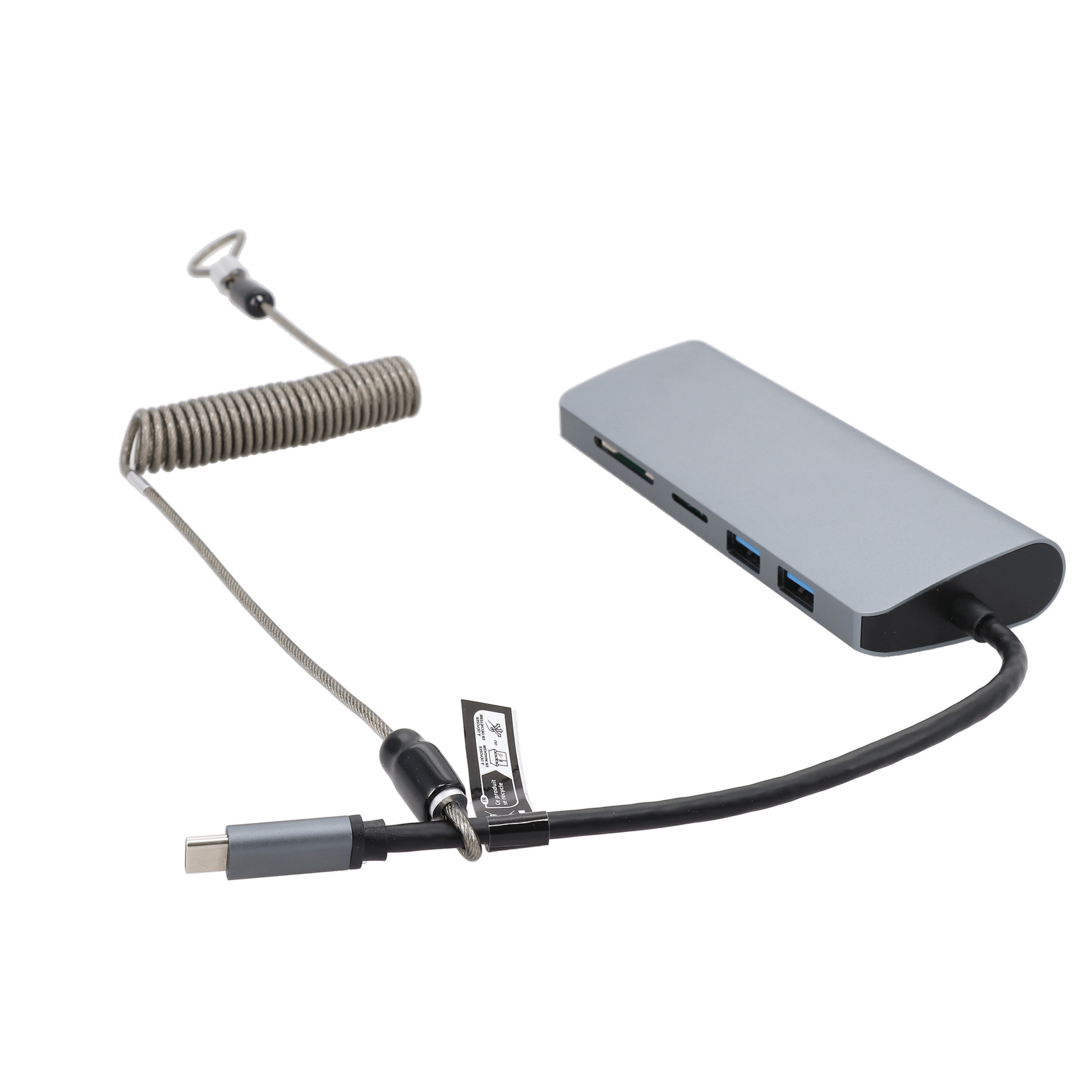 câble anti-vol spiralé plastifié - 2 bagues de sertissage - 2 capuchons de protection -longueur étirée 1,50m