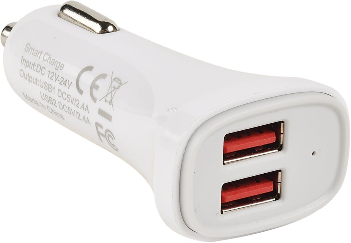 Chargeur 2 USB A femelle - sur allume-cigare - 2 x 5V2.4A (Smart Charge) - blanc brillant