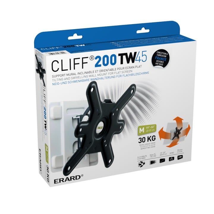 Depuis leur lancement, les supports CLIFF ne cessent de plaire aux consommateurs et installateurs. Leur platine écran arrondie, leur bras striés, le niveau à bulle intégré et le choix des coloris les distinguent immédiatement des produits les plus basiques. Et avec 14 références, vous êtes certains de trouver le bon support pour le bon téléviseur !