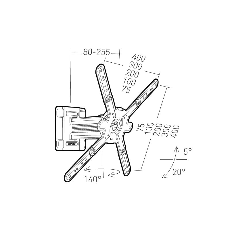 Erard - CLIFF 400 Twist 45° support mural inclinable et orientable pour tv Vesa < 400 - 043340