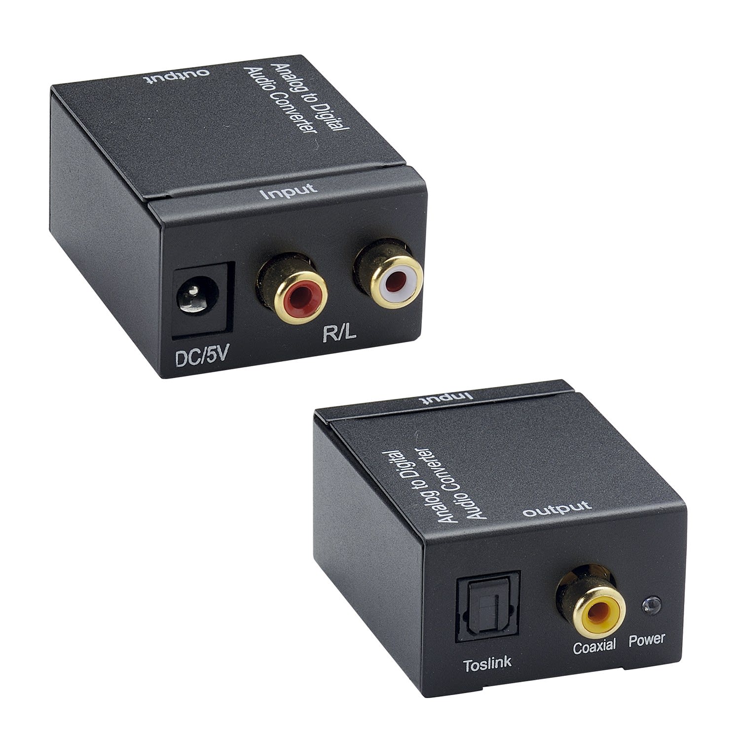 Convertisseur 2 RCA Femelle vers Toslink Femelle et 1 RCA Femelle - plug & play - boitier métal - Alimentation fournie
