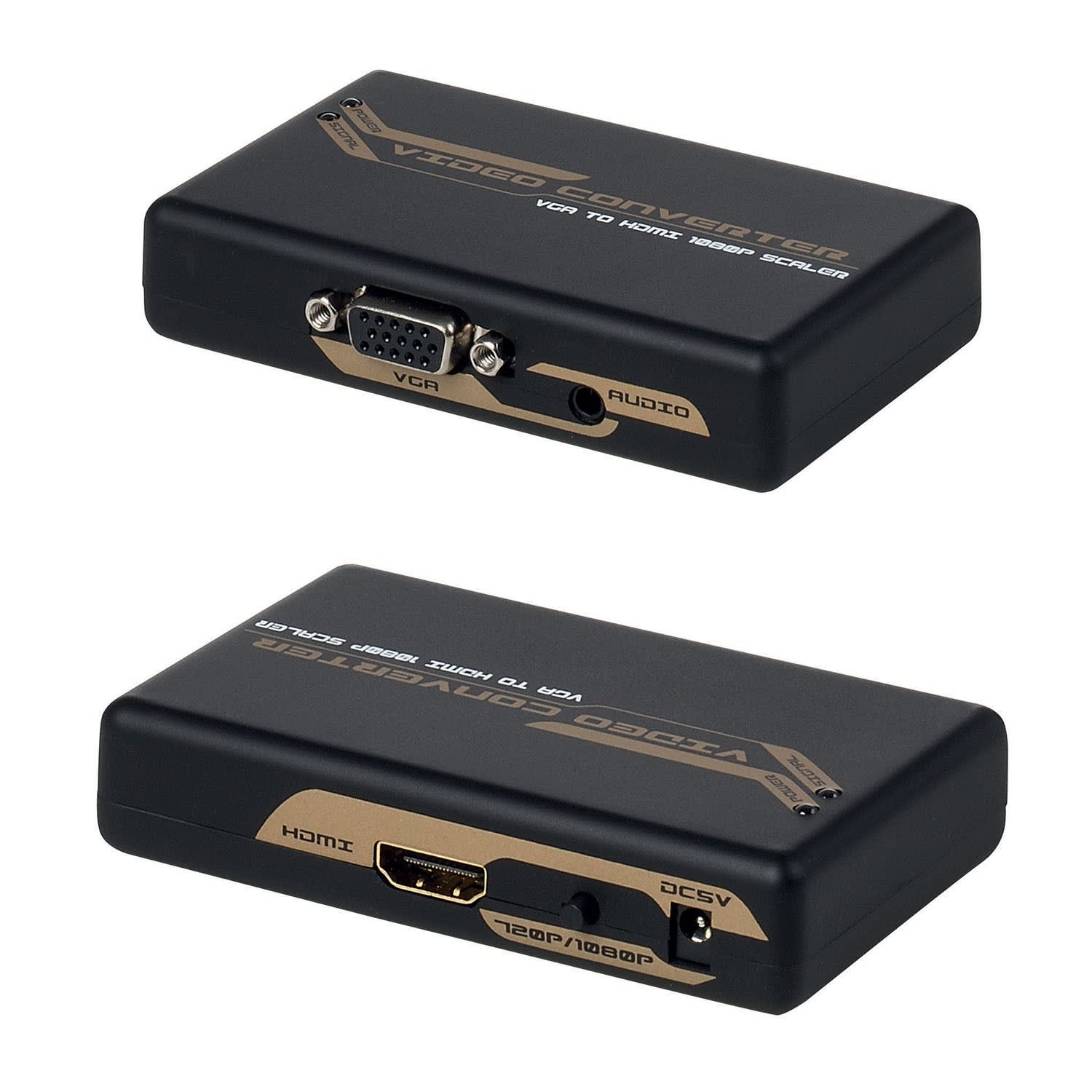 Convertisseur VGA + audio vers HDMI - 1600x1200p à Full HD 1080p - synchronisation automatique des résolutions - plug & play - Alimentation fournie - Permet de diffuser l'audio et la vidéo d'un periphérique informatique - boitier métal