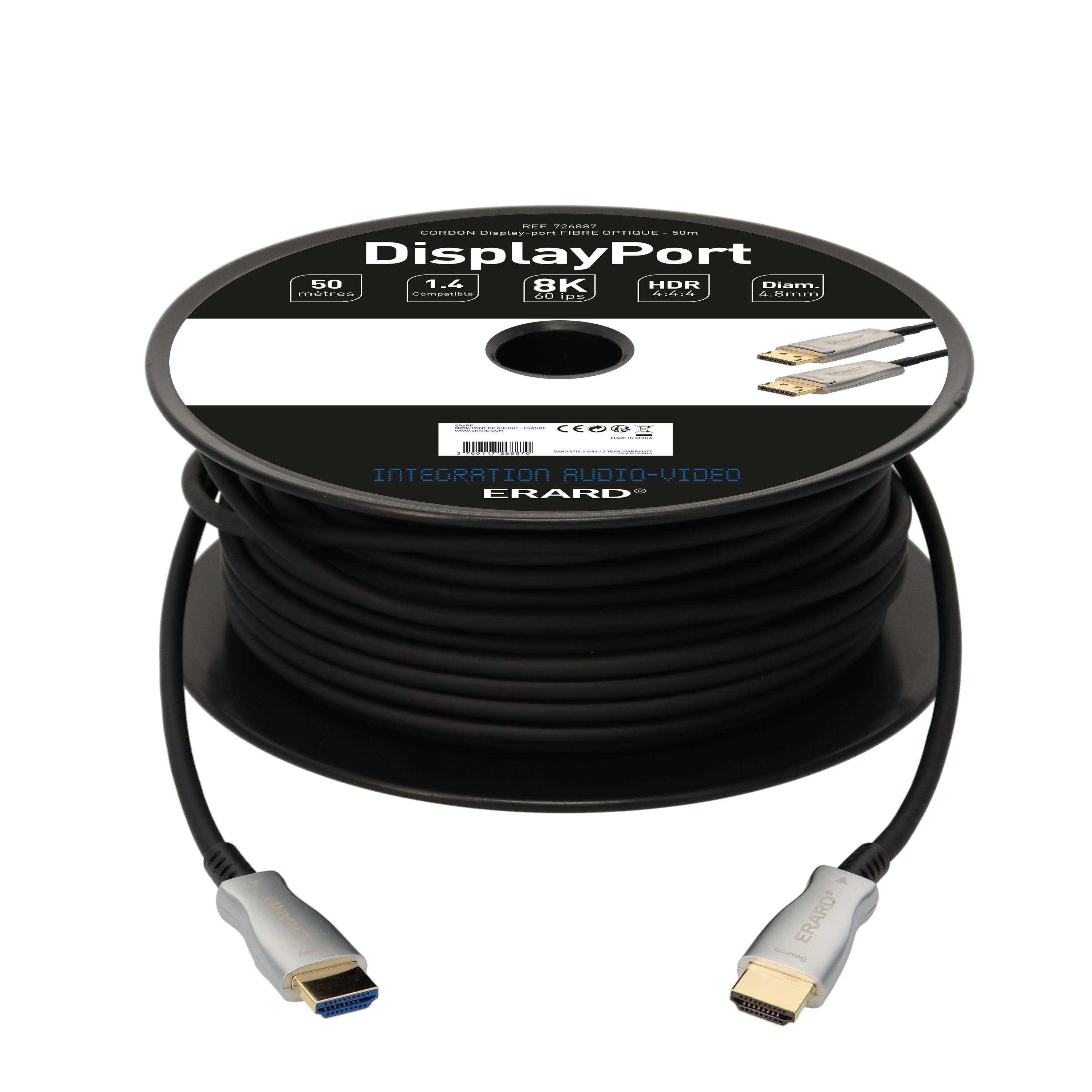 Erard - Cordon AOC HDMI 2.0b A M/M - 20m - fibre optique - UHD 4K/60ips HDR 4:4:4 - OR - 726875