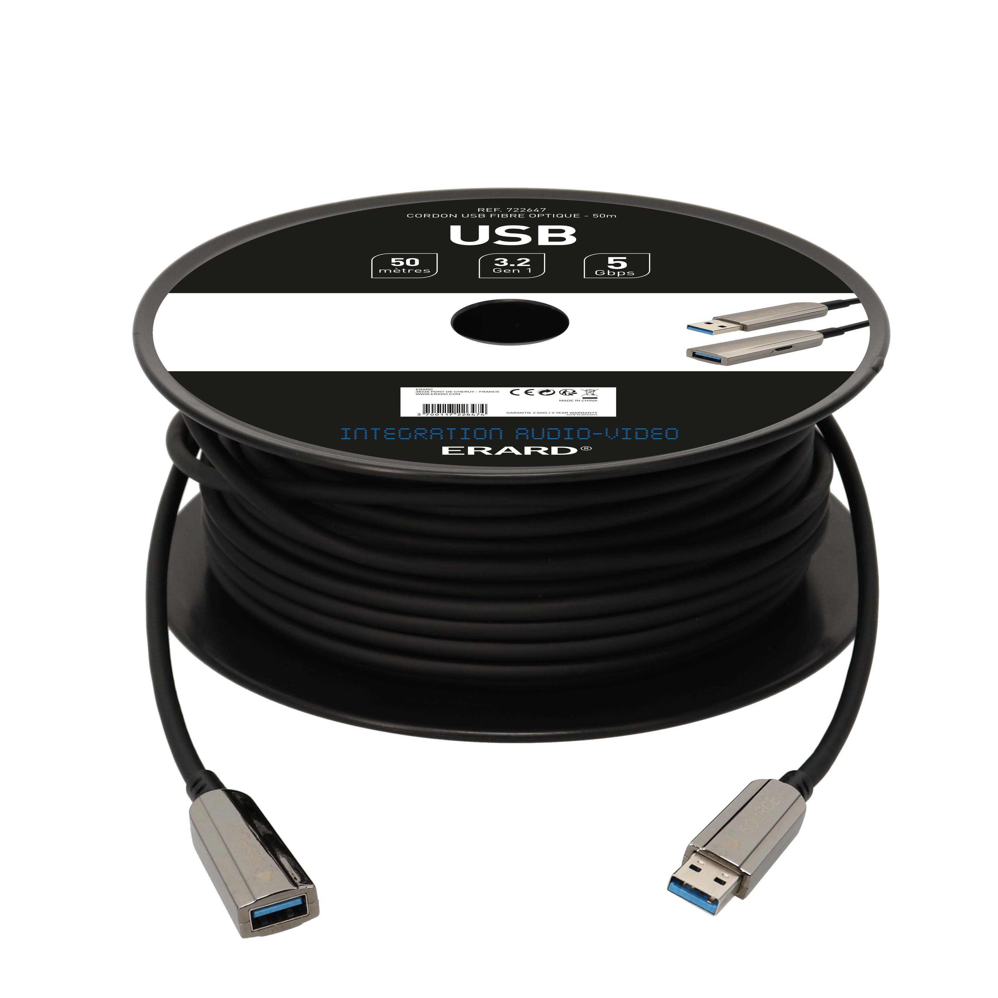 Erard - Cordon AOC USB 3.2 gen 1 - A M / F - 5 gbps - prises métal - 50m - 722646