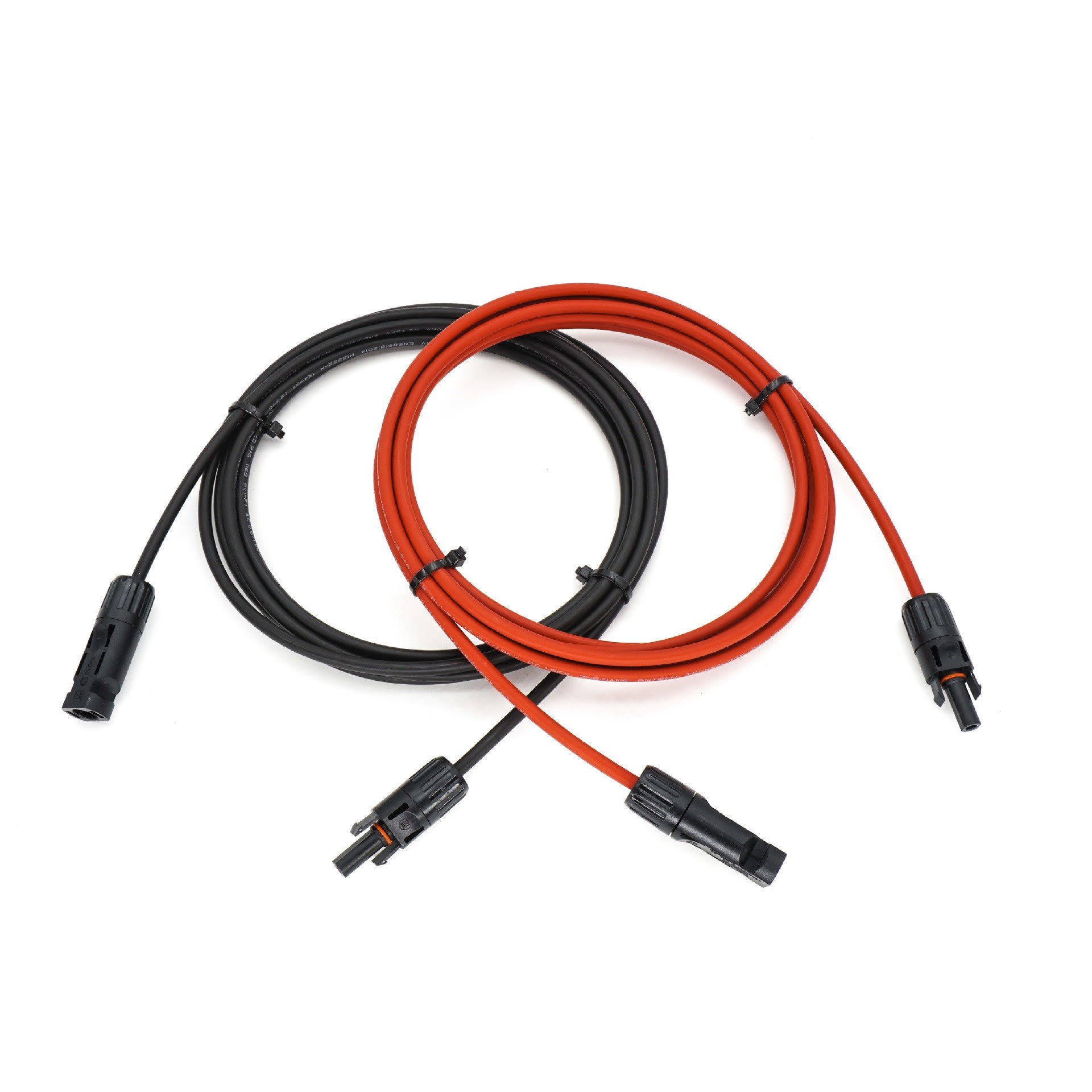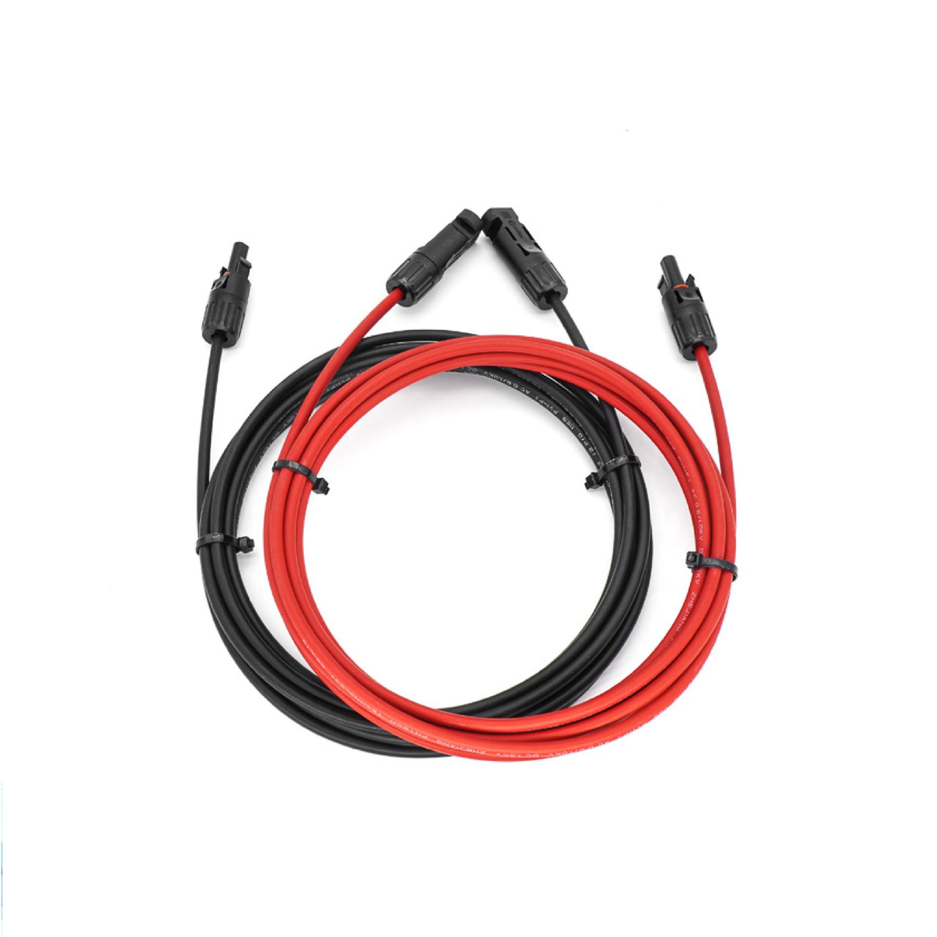 • 1 cordon MC4 rouge mâle / femelle• 1 cordon MC4 noir mâle / femelle• Section : 1 x 4 mm²• Composition câble : 56 x 0.285 mm• Double isolation• Diamètre extérieure : 5, 80 mm +/- 0,20• Résistance linéique : 5.09 Ω / km à 20°C• Courant maximal admissible : 50 A• Gaine polyoléfine