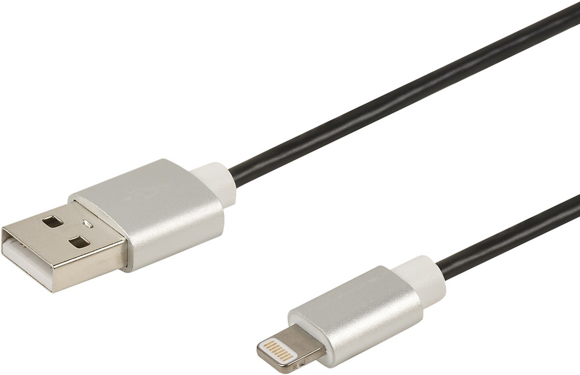 Cordon USB 2.0 A mâle / Lightning mâle - 480 Mbps - 2.4A - licence Apple MFI - prises alu - noir - 1m