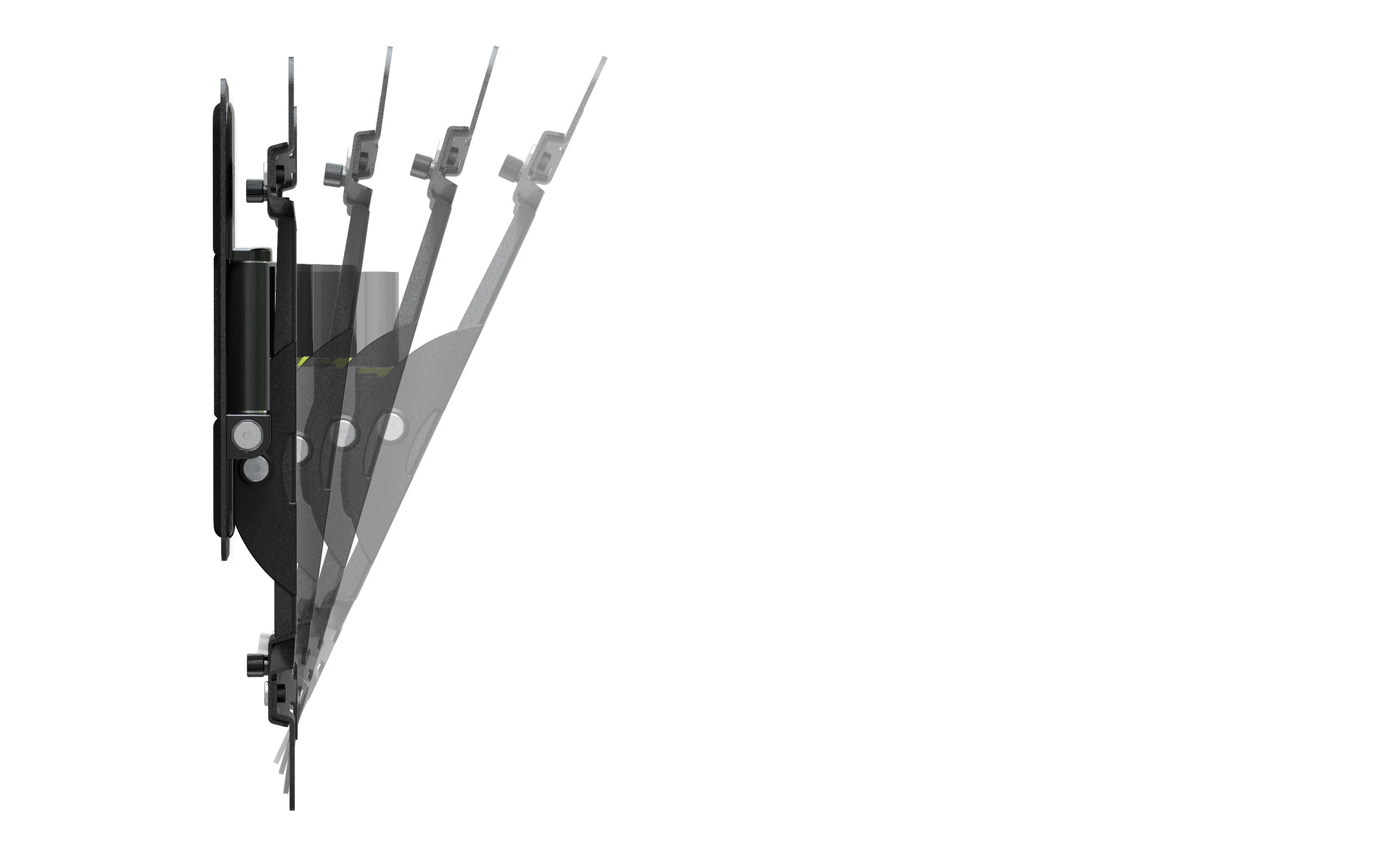 • Bras en aluminium texturé anodisé. couleur titane• Peinture époxy noire.• Système breveté de rondelles excentriques pour corriger les erreurs de perçage.• Système de micro réglage breveté pour assurer une parfaite horizontalité de l’écran.• Réglage de l’inclinaison en continu et sans outil + réglage possible de la friction.• Cache platine murale aimanté.• Contient un jeu de cales et les vis nécessaires à l’installation d’un écran incurvé ou à dos irrégulier (Kit Adapt+)• Compatible tout type d'écran (LCD, LED, QLED, OLED)• Livré prémonté.