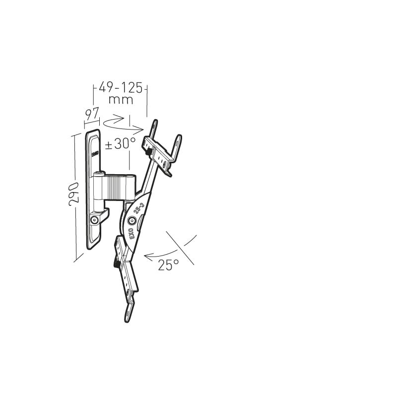 Erard - EXO 400TW1 support mural aluminium inclinable orientable - Déport 125 mm 1 bras - 048140