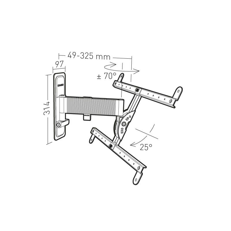 Erard - EXO 600TW2 support mural aluminium inclinable orientable - Déport 325 mm 1 bras - 048260