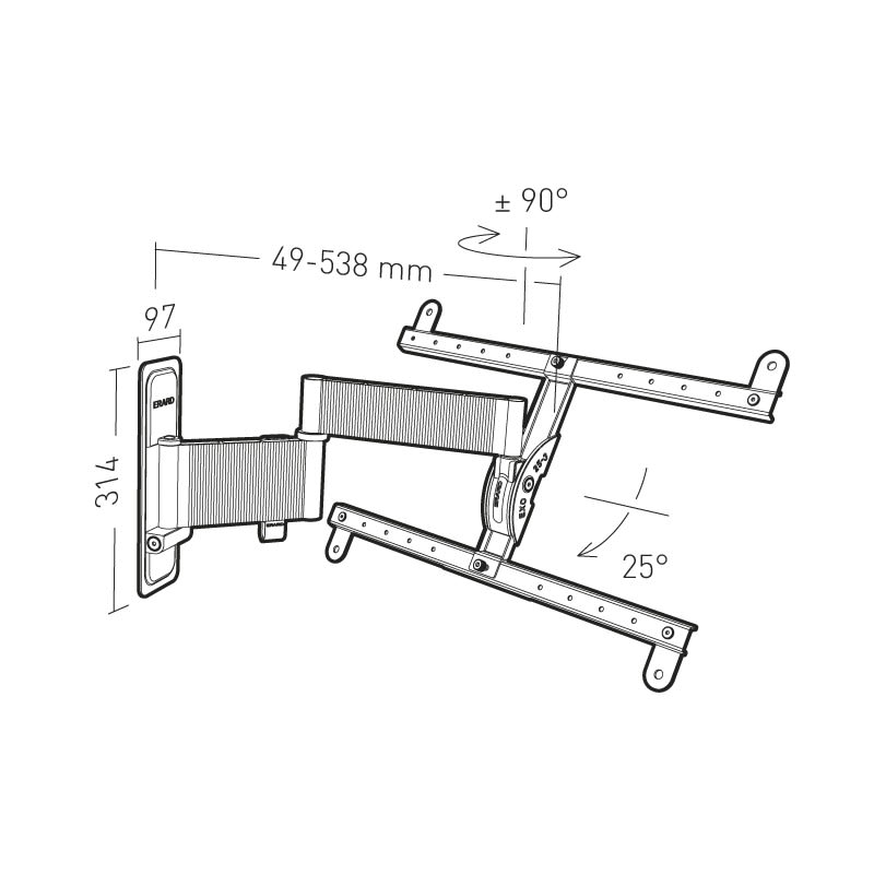 Erard - EXO 600TW3 support mural aluminium inclinable orientable - Déport 538 mm 2 bras - 048360