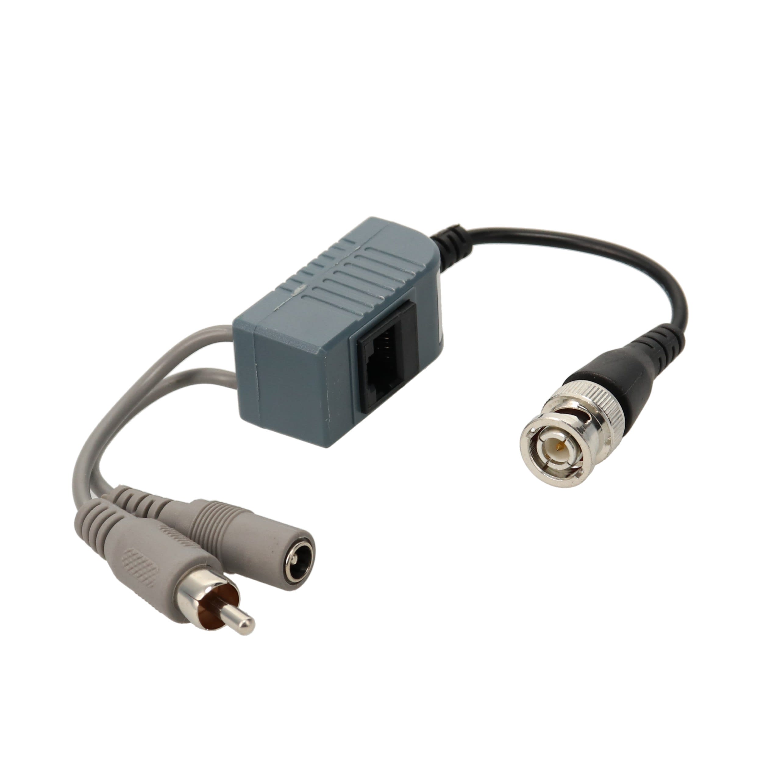 Extendeur BNC + alimentation 12V + audio via RJ45 - auto-alimenté - plug & play - Distance maximale de transmission du signal 80m - Permer de déporter des signaux vidéo BNC + audio mono + une alimentation 12V (via un seul câble RJ45).